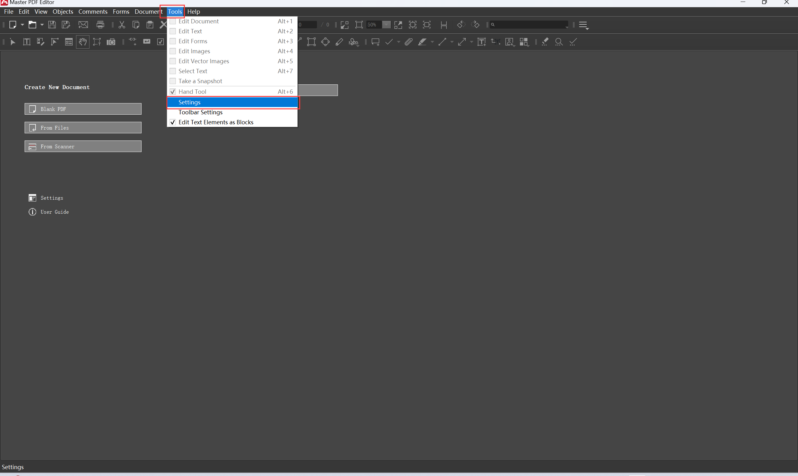 1、下载并安装好软件后,打开依次点击【Tools】——【Settings】