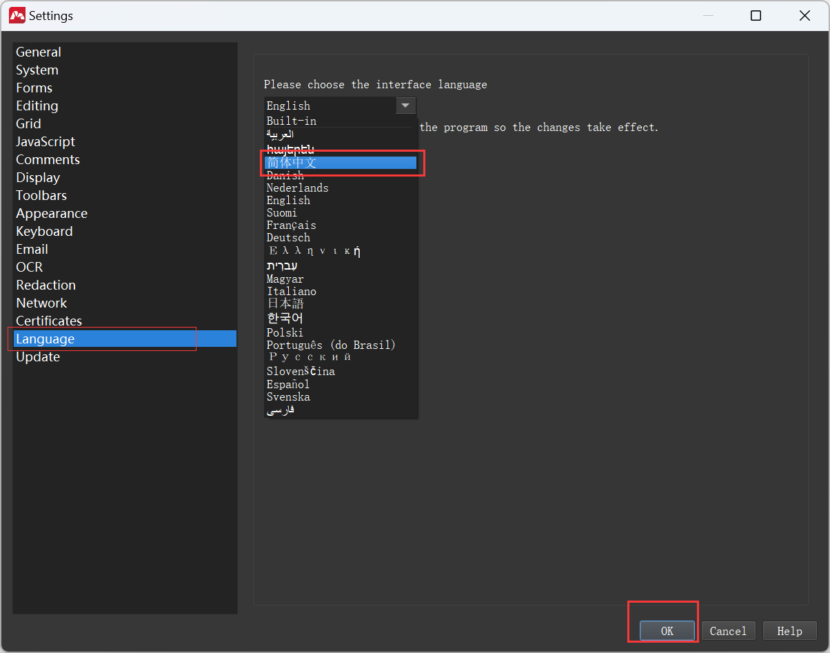 3、最后点击【OK】按钮,重启即为Master PDF Editor中文版哦,