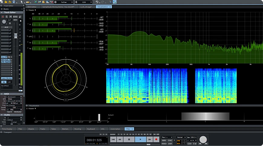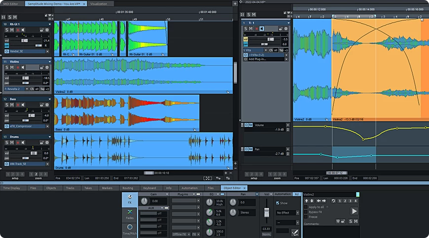Samplitude X8 补充了大量的具备仿真经典模拟处理器功能的高质量音频效果。这其中包括了一个出色的带有可调带宽的模拟压缩器,饱和效果模拟器以及一个用于调整打击乐类音频信号包络的瞬时处理器。