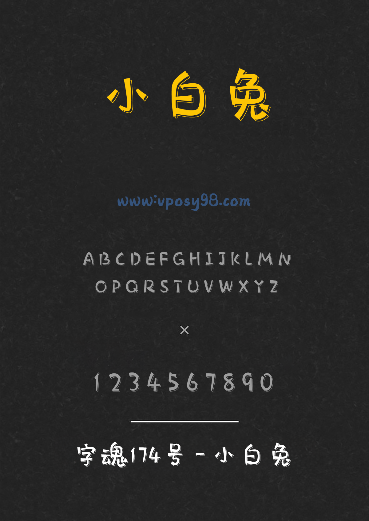 字魂174号-小白兔是一款创意衍生字,字体笔画中加入了白色立体投影效果,字体风格萌趣可爱,适用于广告、插画、动漫、综艺、海报及广告营销场景。