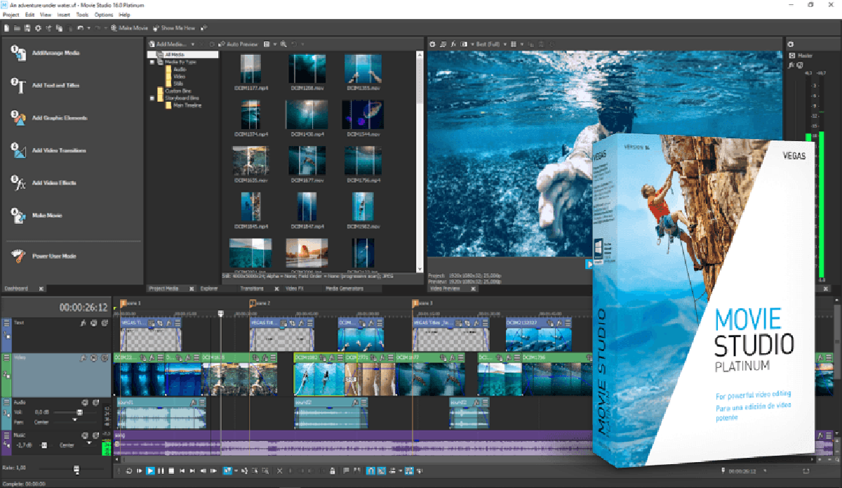 MAGIX VEGAS Movie Studio Platinum 2024 v23.0.1是专业视频制作、编辑软件!全面的工具让您能够轻松的添加导入您 的视频、图像和音乐并进行编辑操作,具有高级的工具让您能够轻松开始一个精彩视频的制作,并且无需担心技术方面的问题,因为它提供了各种你需要的功能来增强您的工作流程,您可以自由的进行理想中的剪辑、添加图形、添加音乐、添加精彩自然的过渡和丰富的效果、添加标题然后自由的进行各种工具的打开和切换,如果你担心使用方面的问题,其实也没必要,因为提供的引导式使用方法,所以你可以很轻松的进行编辑,专业视频编辑器,具有一流的稳定性和精准的移动对象跟踪,并且告别手动的设置和选择,所有的工作流程都是那么的流畅自如,是一款非常优秀的高级视频编辑软件,