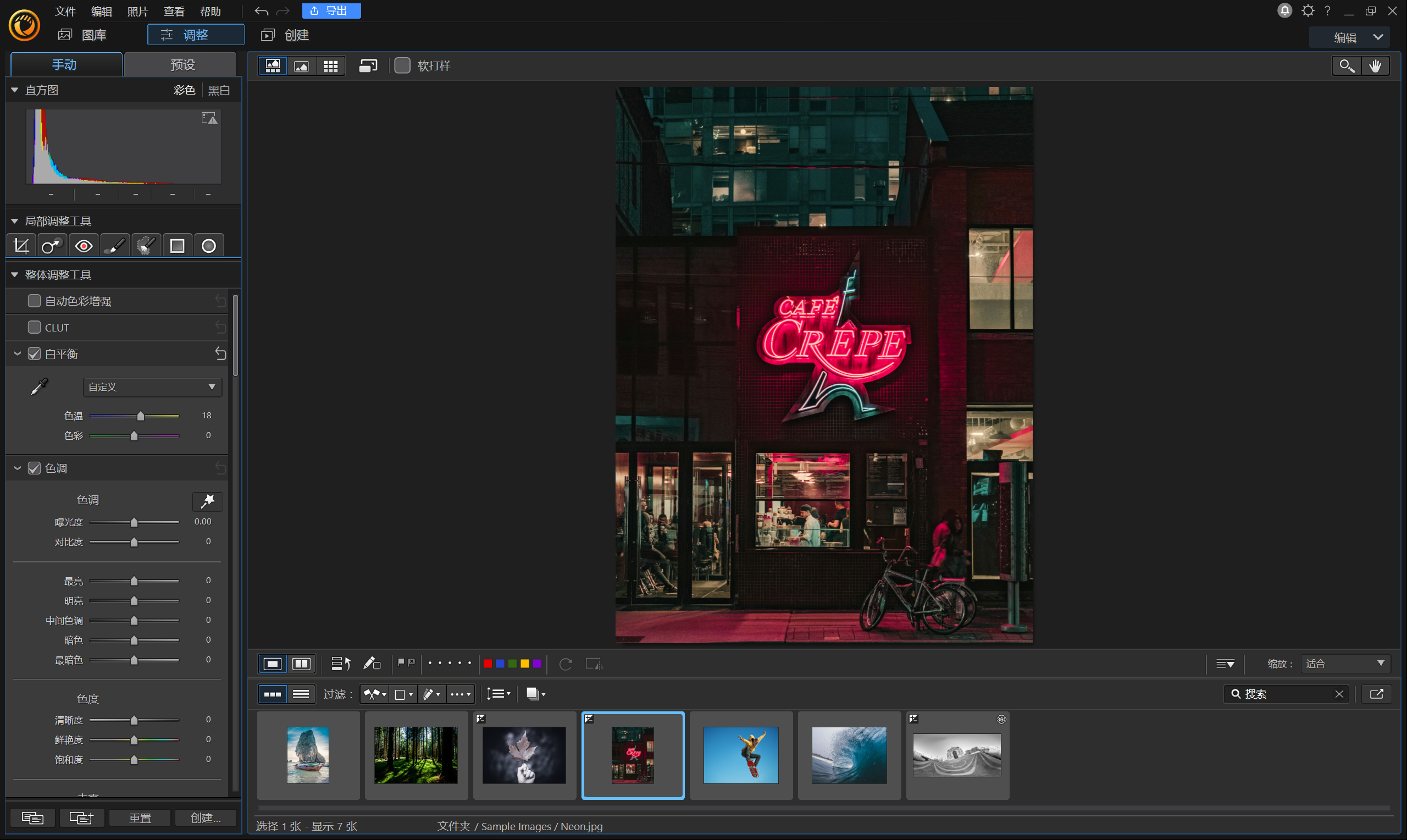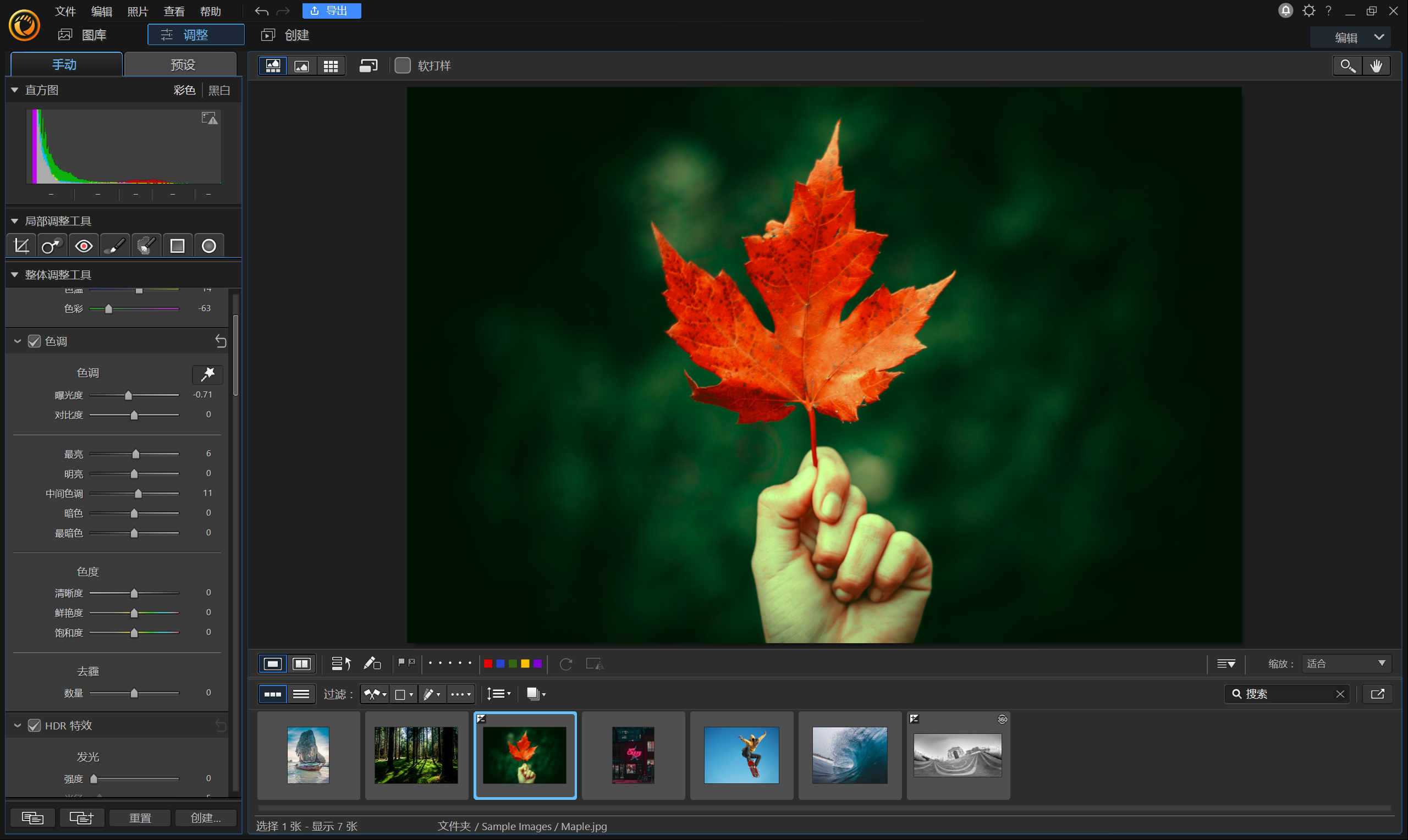 调整高光、阴影和中间色调,完全控制色调、饱和度和亮度。