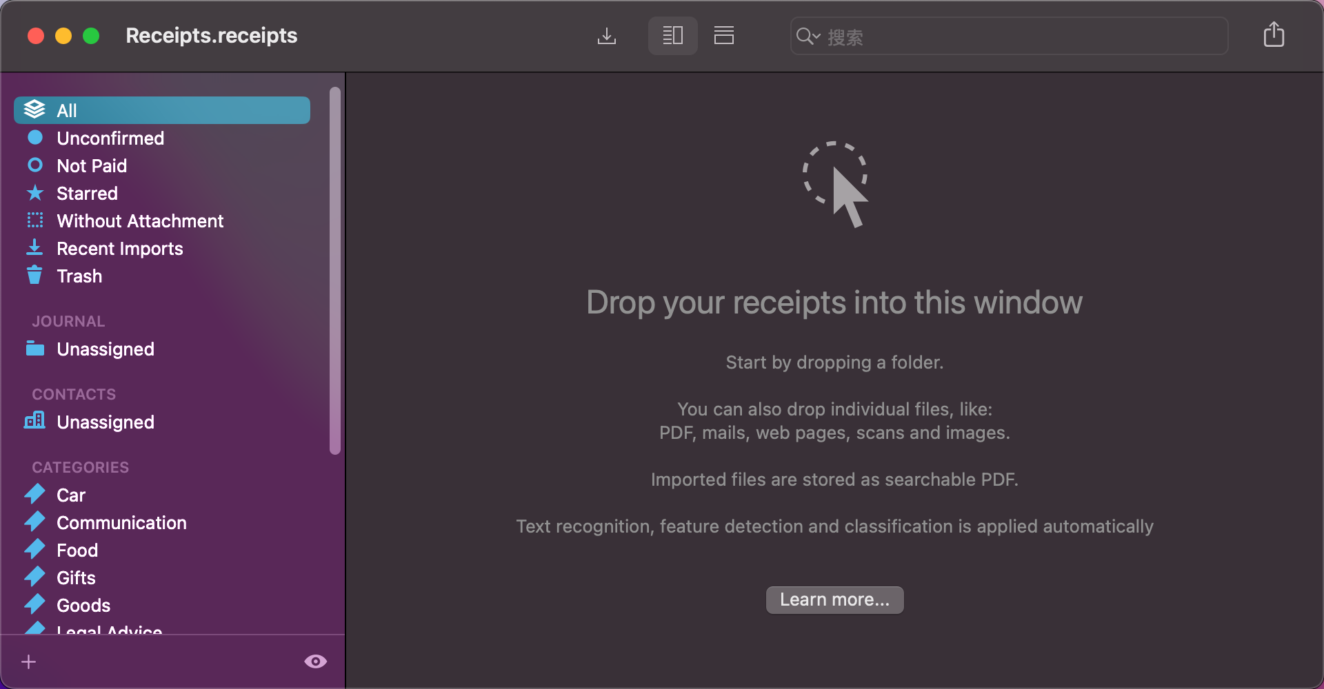 总而言之,Receipts提供了一个组织良好的空间,您可以在其中快速导入发票报告,例如图像文件,PDF文档或电子邮件,并按不同标准对条目进行排序。