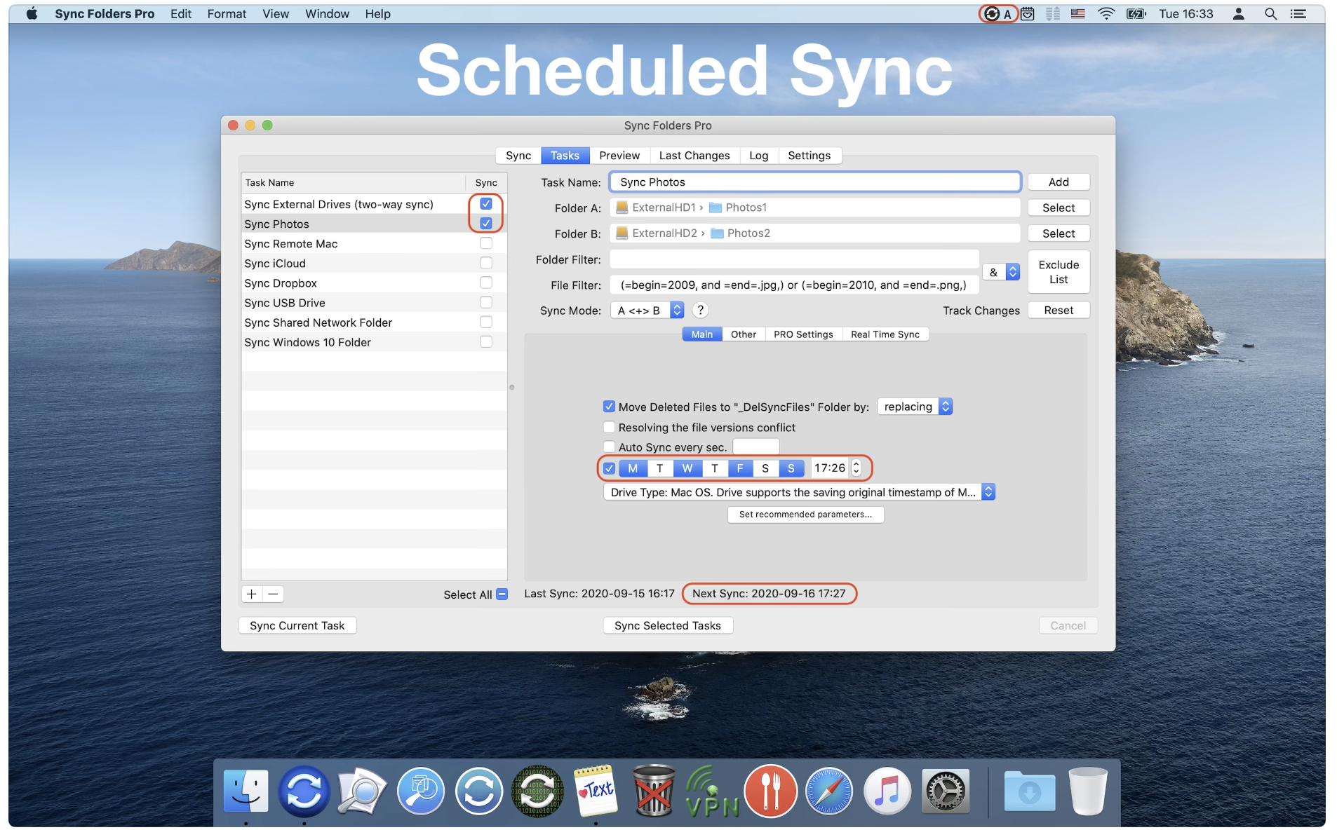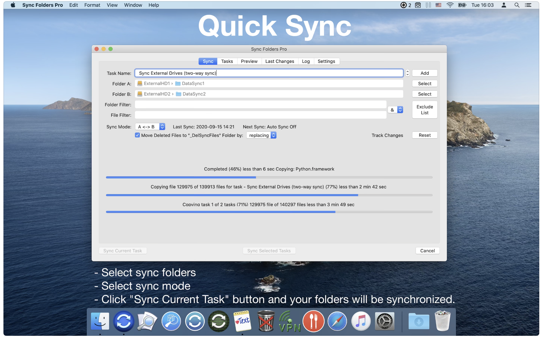 Sync Folders Pro for Mac是一个易于使用的初学者的应用程序,有能力为最苛刻的专业人员微调同步设置。