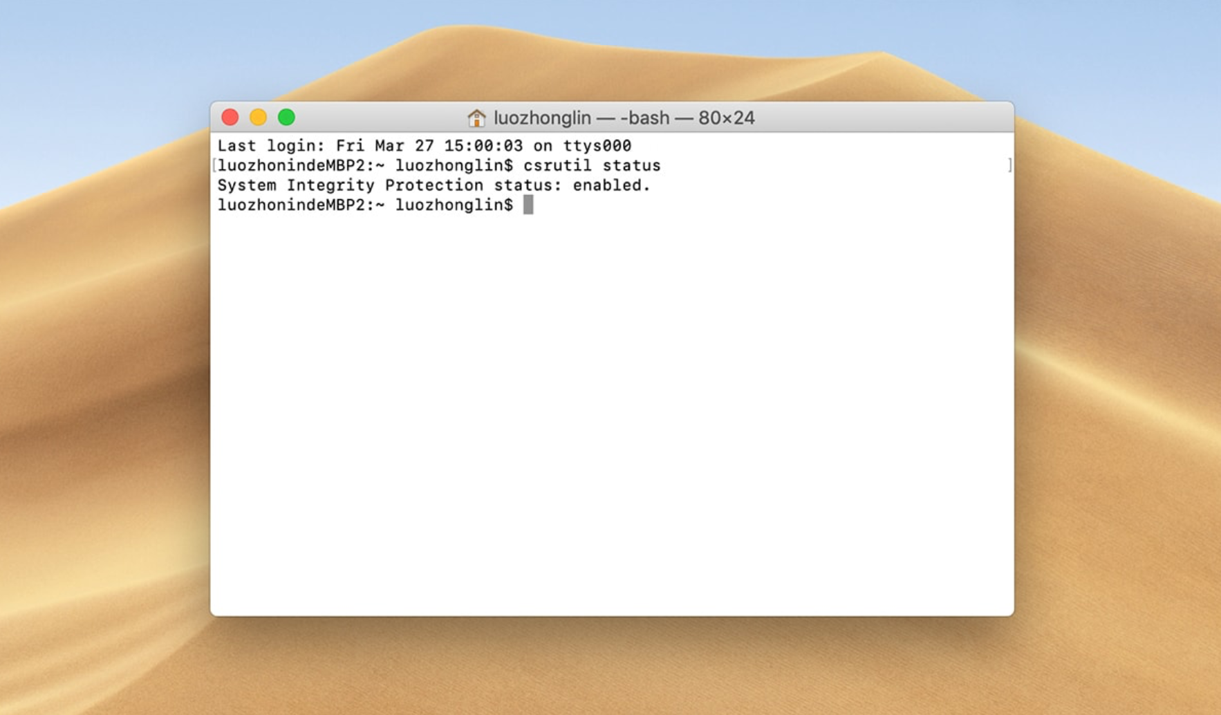 System Integrity Protection status: enabled.