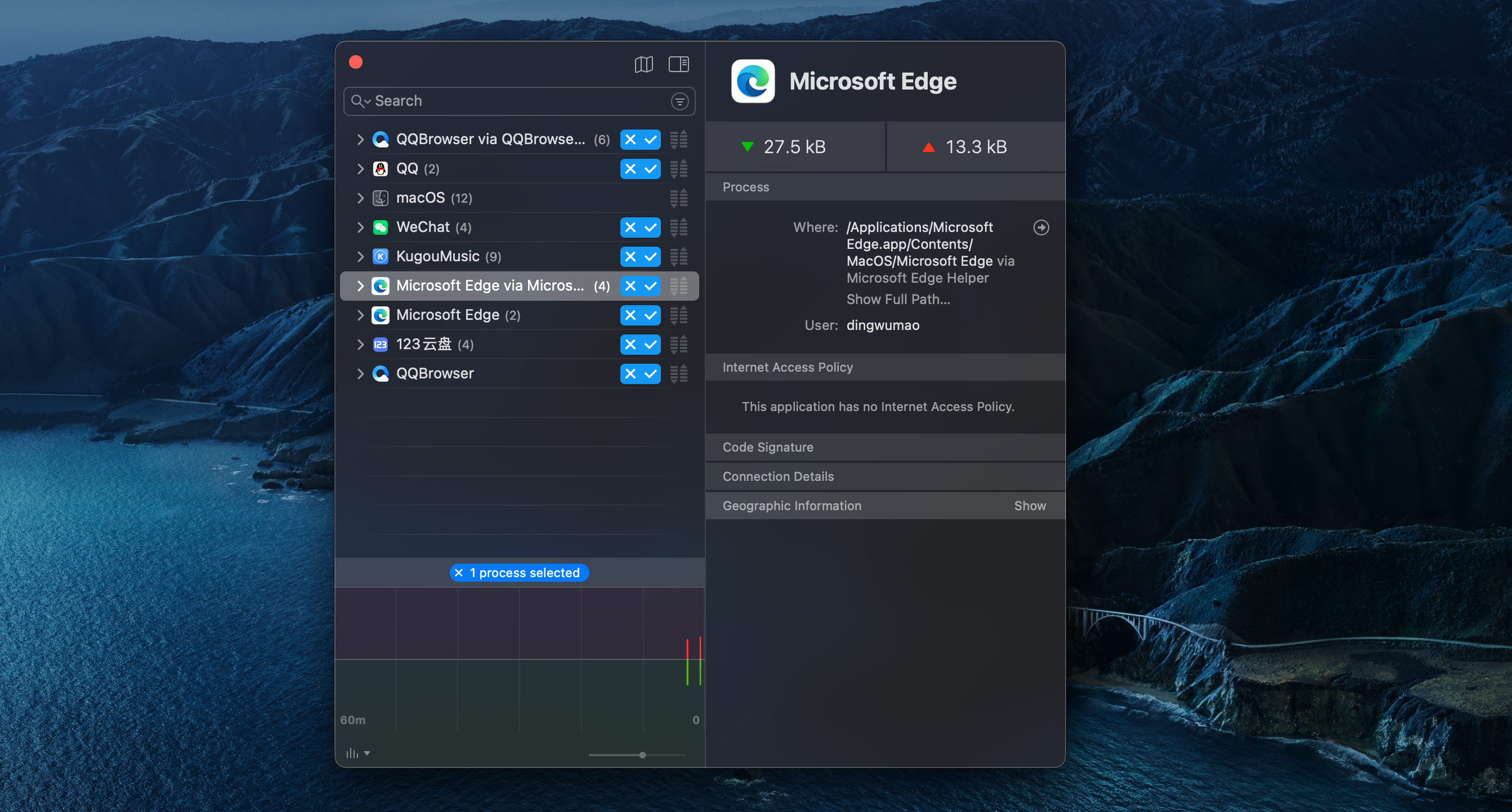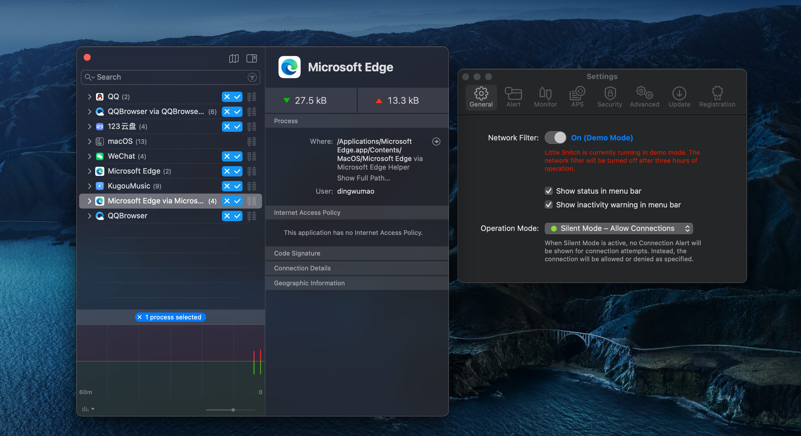 跟踪后台活动一旦您的计算机连接到Internet,应用程序通常就有权在任何需要的地方发送任何信息。Little Snitch记录了此活动,并允许您自己确定此数据会发生什么。