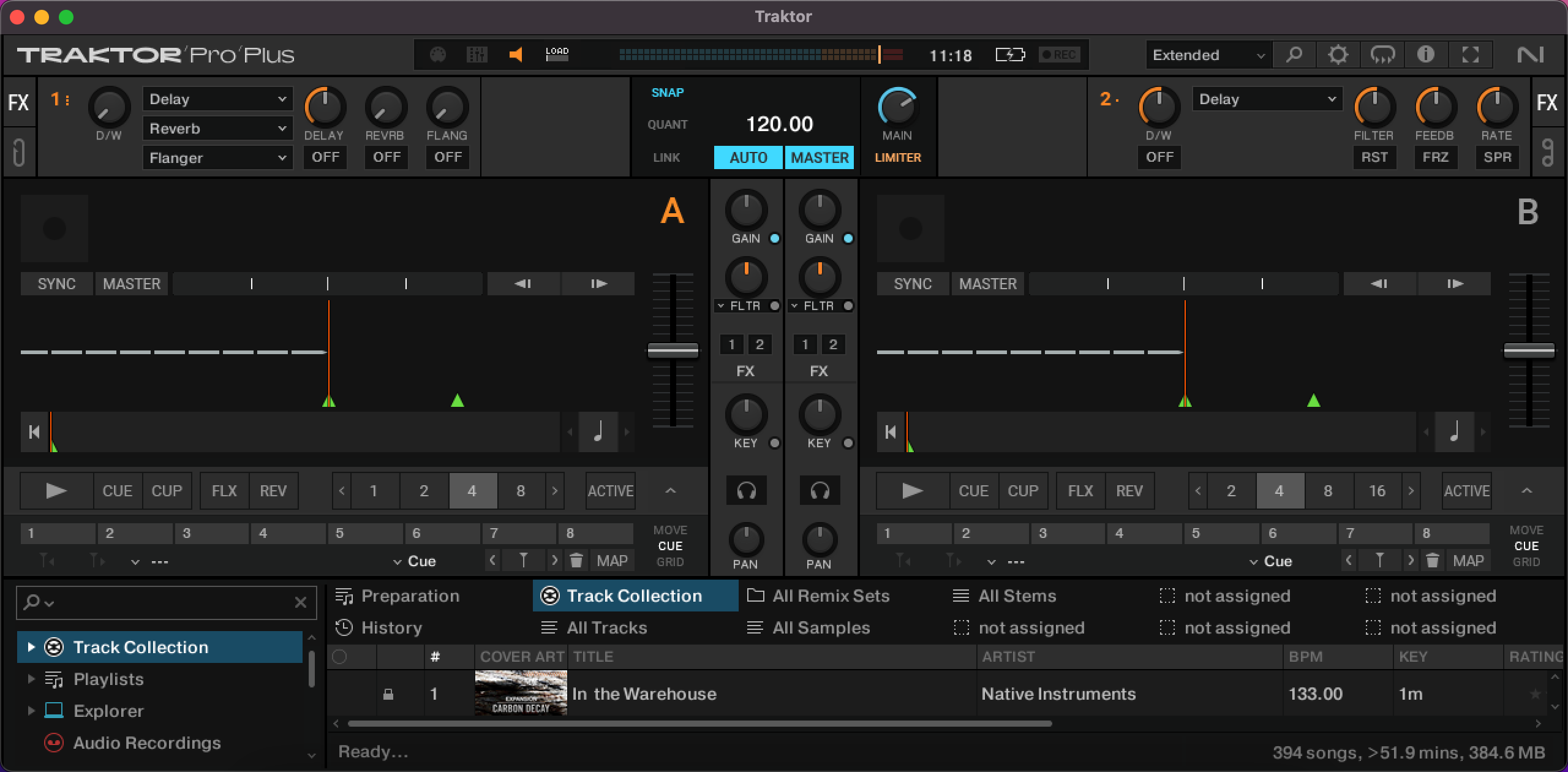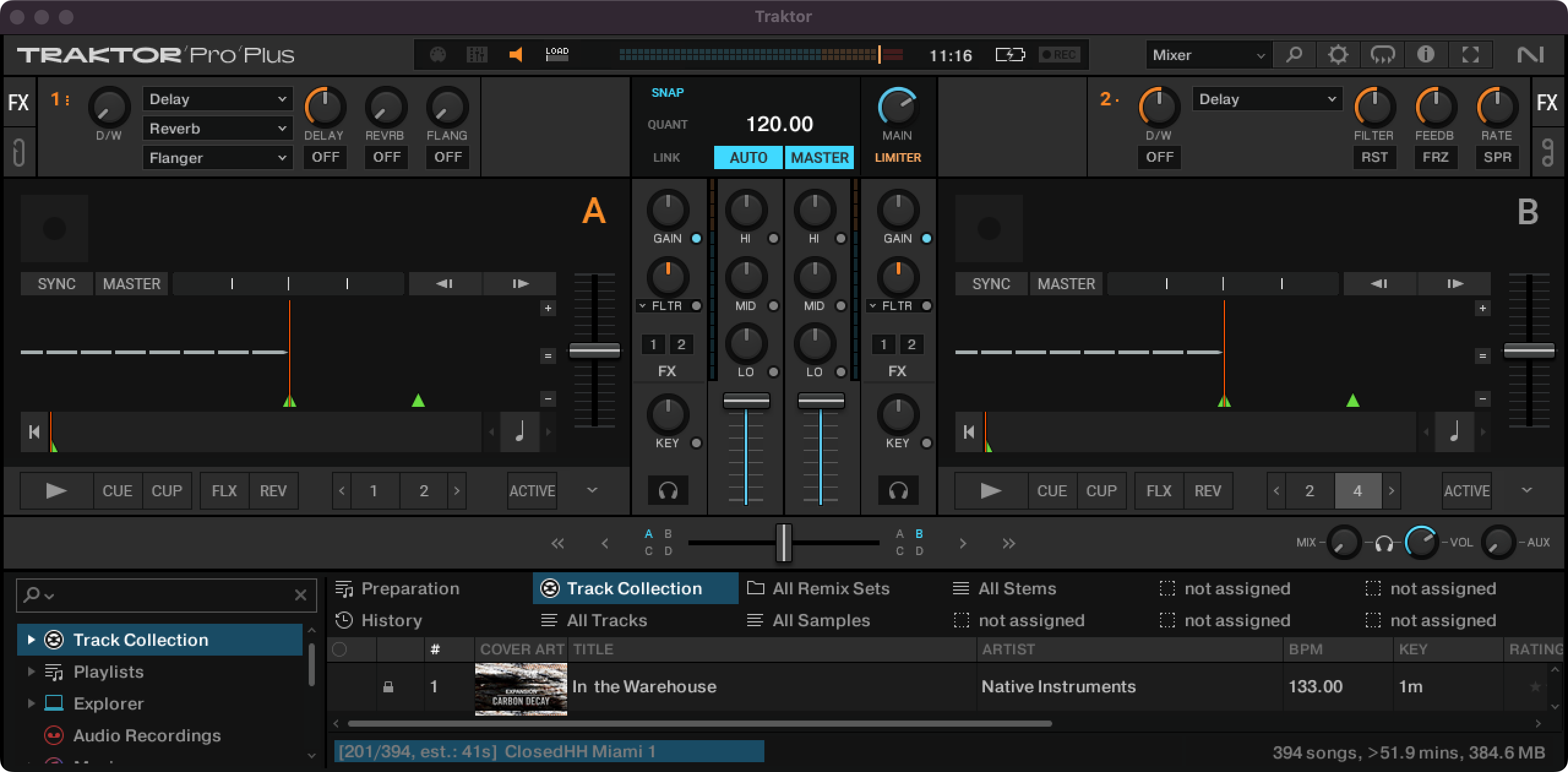 raktor Pro Plus是一款专业的DJ软件。它提供了许多强大的功能,包括混音、节奏匹配、音效、样品、录音、回放等。作为一款可扩展的软件,它支持各种音频接口和控制器,包括MIDI控制器、DJ控制器和外部混音台等。此外,它还支持多个音轨的同步混音和多路输入输出,使您可以同时播放和混合多个音频文件。Traktor Pro Plus还提供了优秀的音频质量和可靠的稳定性,为DJ和音乐制作人提供了一个强大的工具。测试环境:MacOS 14.2.1 M2芯片