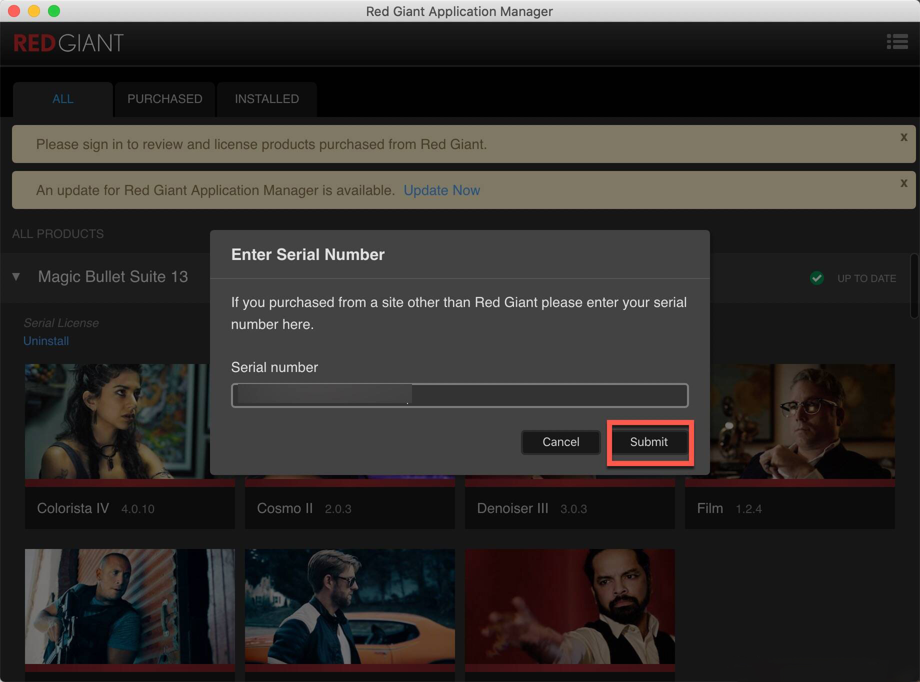 Submit即可,如图:6.重启打开AE软件,即可看到magic bullet suite