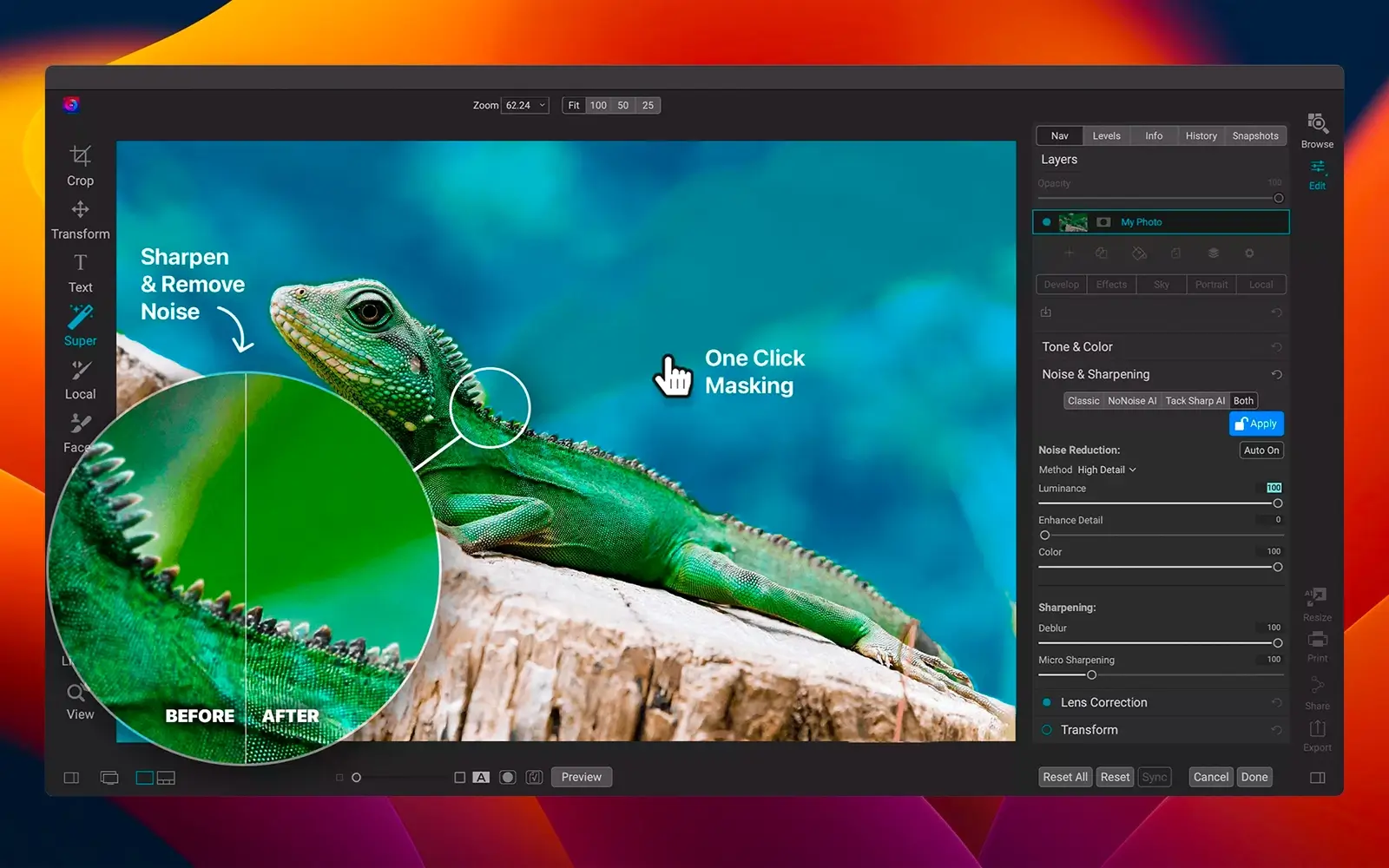 ON1 Photo RAW提供了一系列功能强大的工具,旨在帮助您解决常见的照片编辑问题:通过调整颜色,色调,清洁某些不需要的元素或应用不同的效果(包括黑白样式)来提高图像质量。
