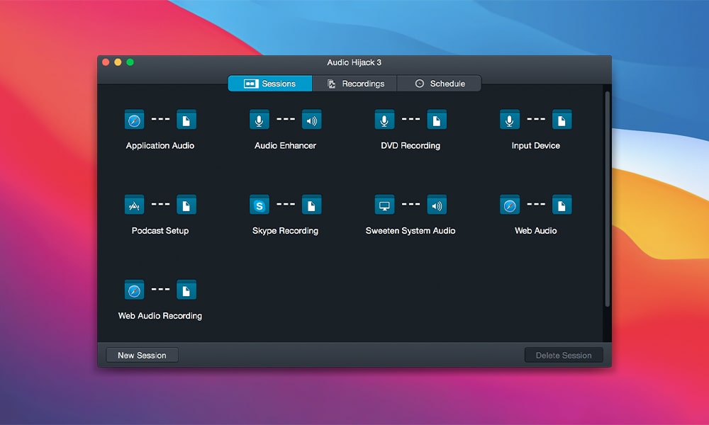 Audio Hijack for Mac可以记录任何应用程序的音频,包括来自Skype的VoIP呼叫,来自Safari的网络流等等。保存来自麦克风和混音器等硬件设备的音频。您甚至可以一次录制Mac上听到的所有音频!如果您能听到,则Audio Hijack可以录制它。
