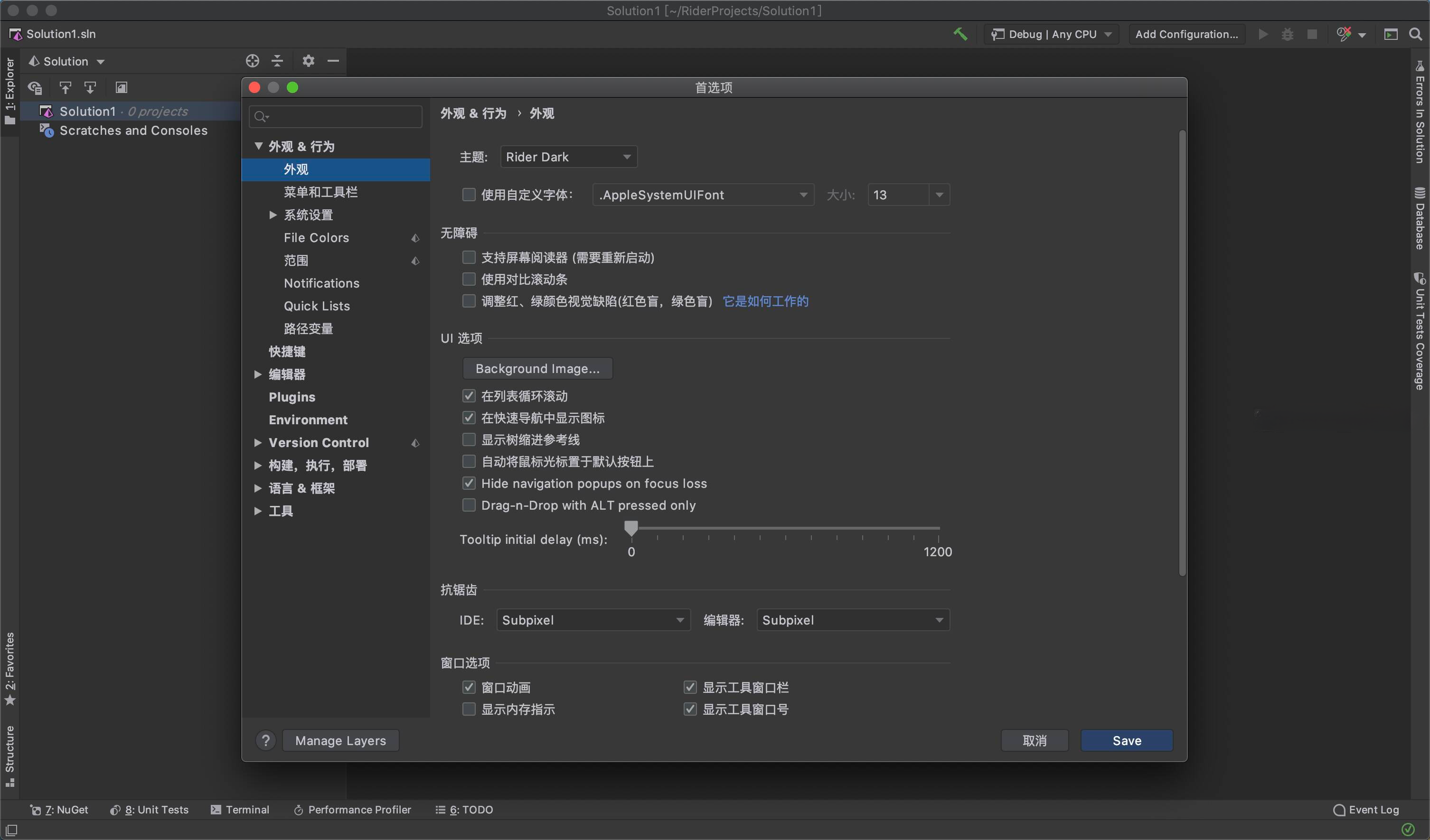 Rider可以在多个平台上运行:Windows,macOS和不同品种的Linux。如果您想在Mac上编辑,构建,运行或调试Unity或.NET Core应用程序,这是您的完整IDE。