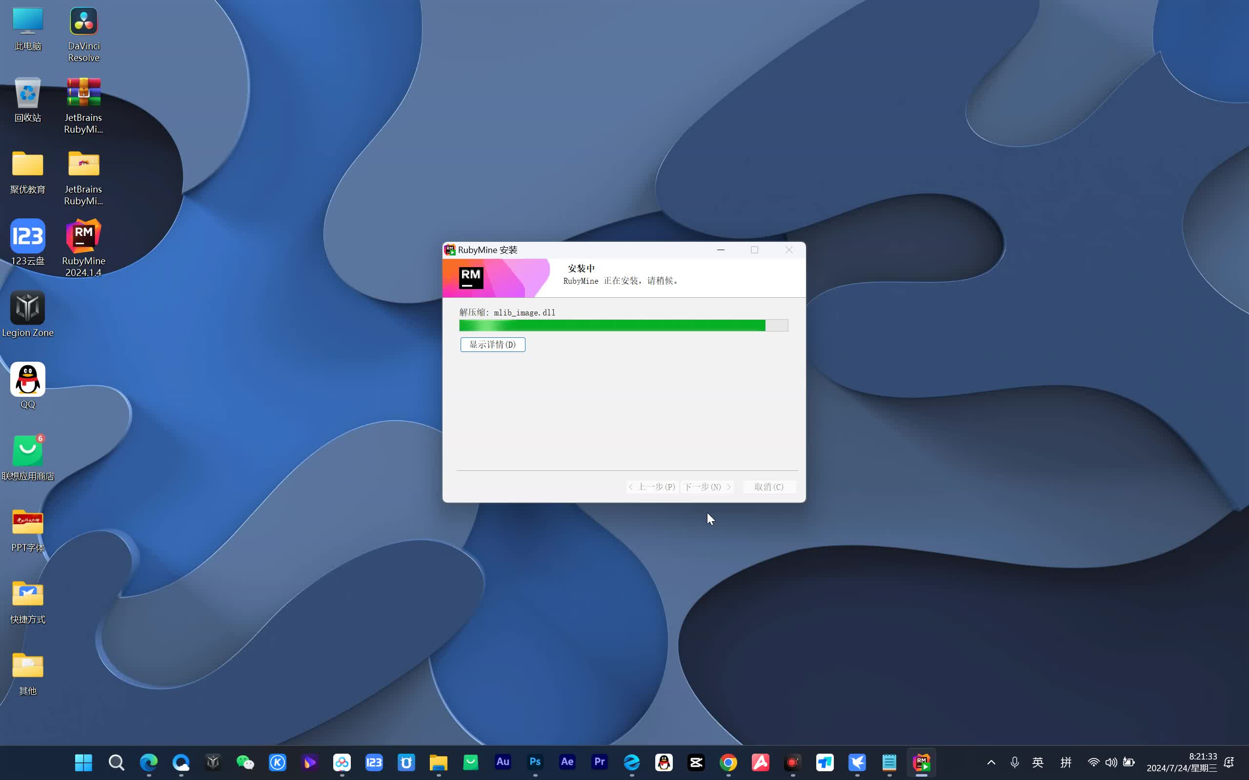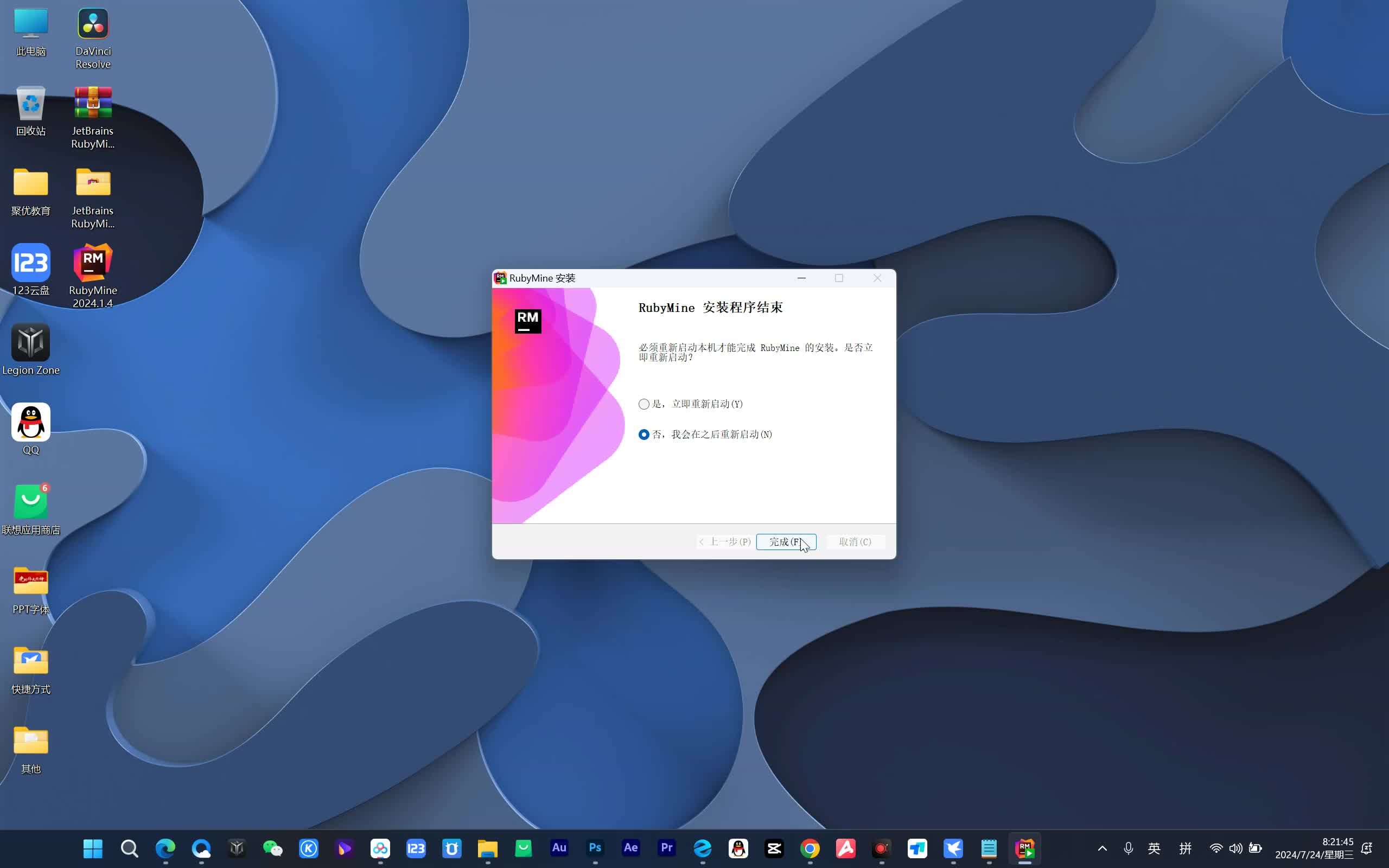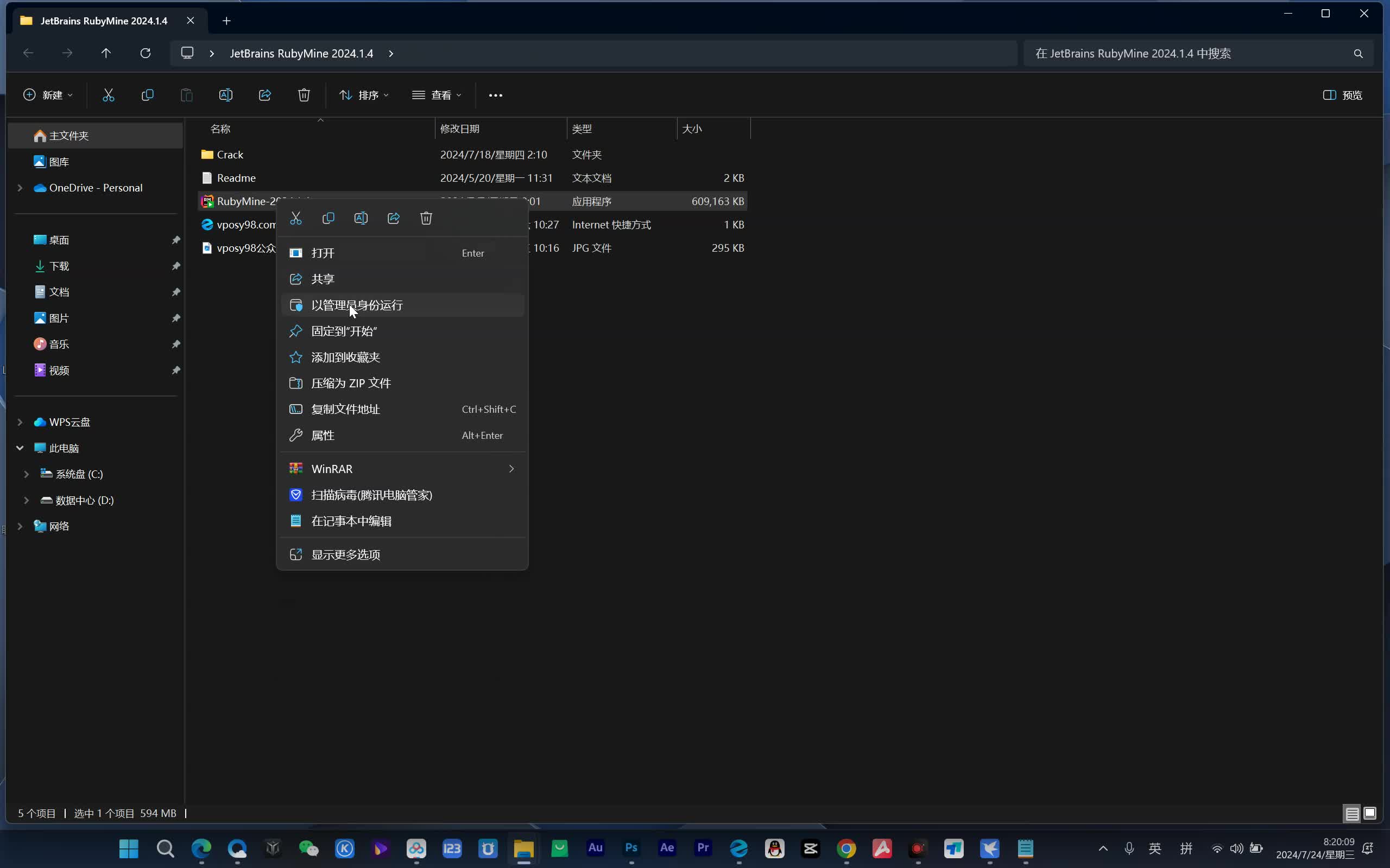 2、单击右键,以管理员身份运行“RubyMine-2024.1.4”开始安装;