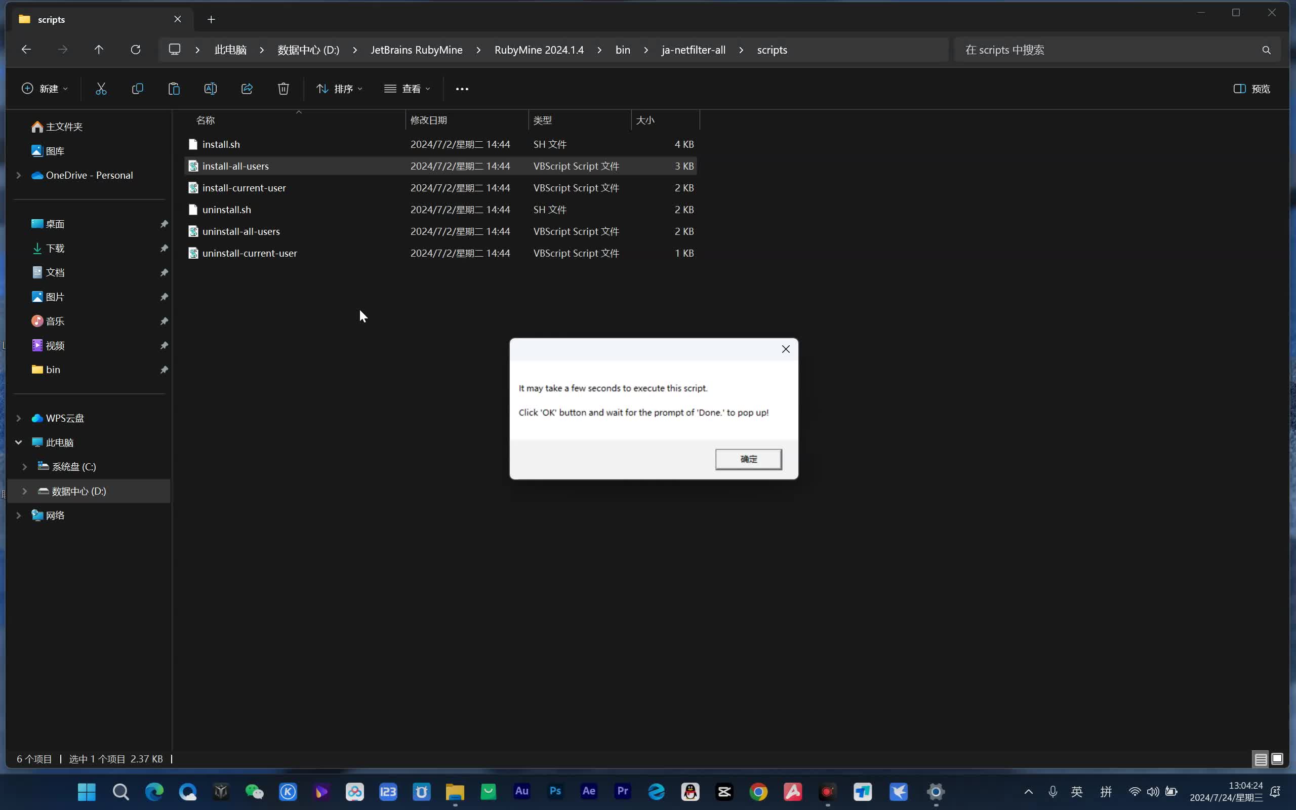 运行自动配置VM选项,即管理员身份运行以下文件 ja-netfilter-all\script\install-all-users.vbs