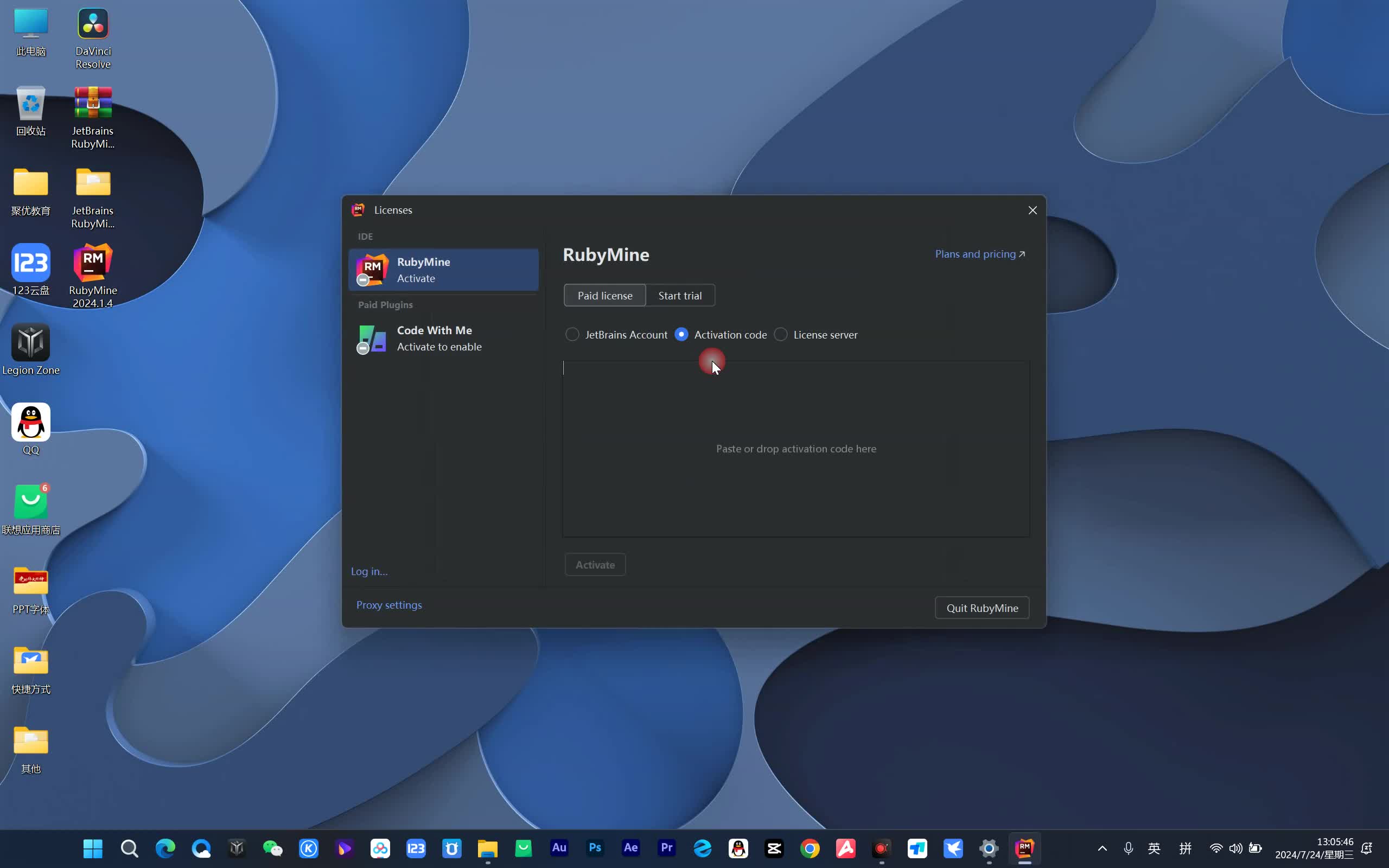 打开软件,勾选Do not import settings,点击OK,弹出注册界面,点击切换至Activation code,复制激活码,点击Activate即可。