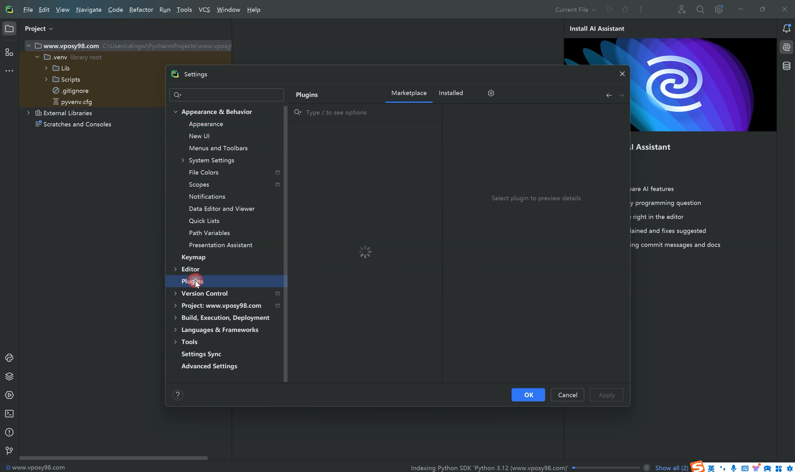 全英文的,同时按下键盘的Ctrl+ALT+S 打开 Settings -> Plugins ;
