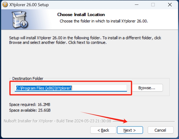 3.选择安装目录(默认目录:C:\Program Files (x86)\XYplorer),如图