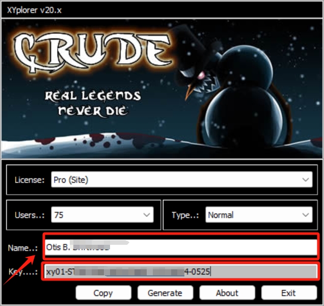 10.双击打开keygen.exe,点击“generate”获取免费码;复制相应信息输入进去,点击确定即可,如图