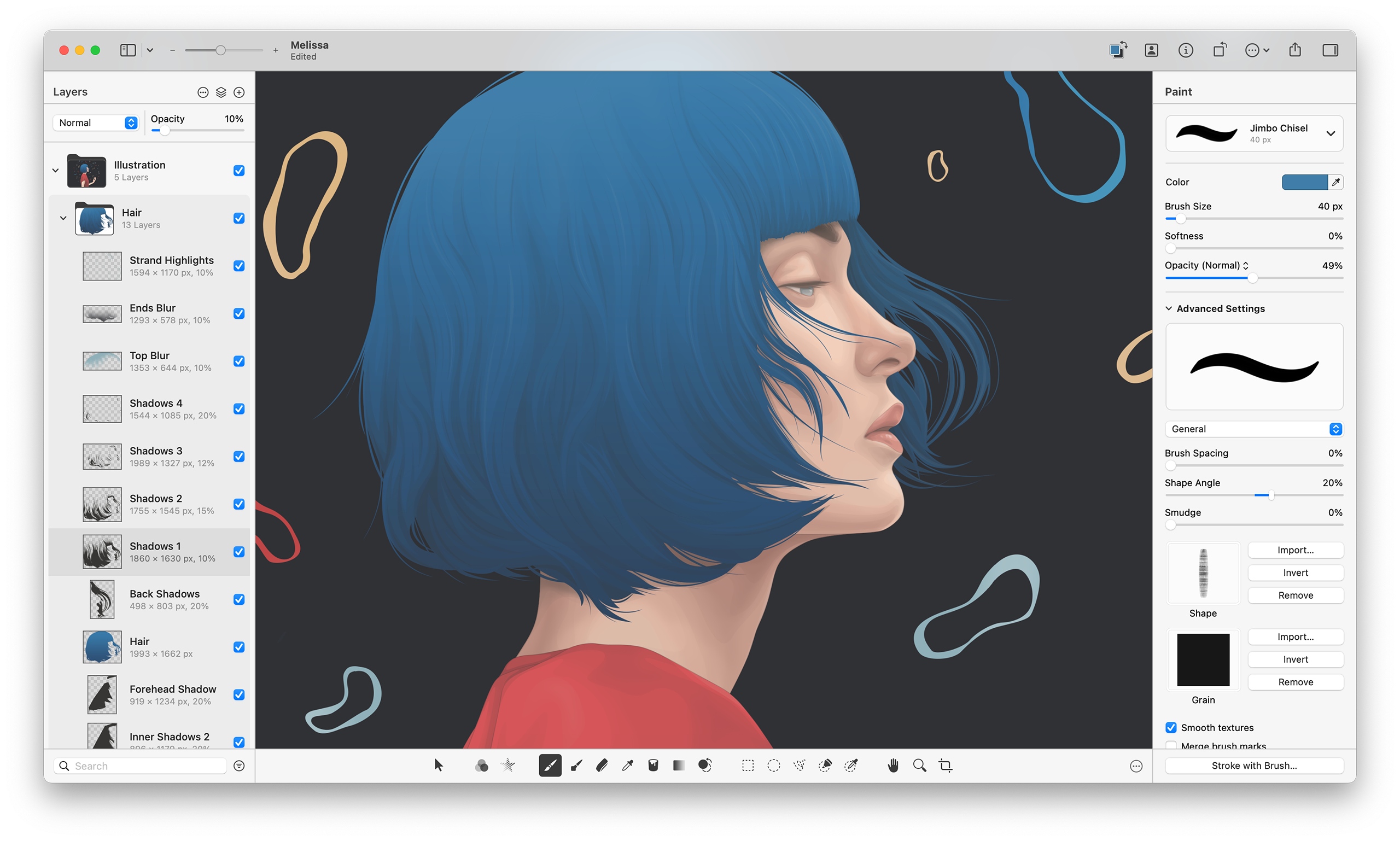 -使用一系列手工制作的、完全可定制的、双纹理的画笔来创建数字或传统绘画,完全支持数字图形平板电脑,。