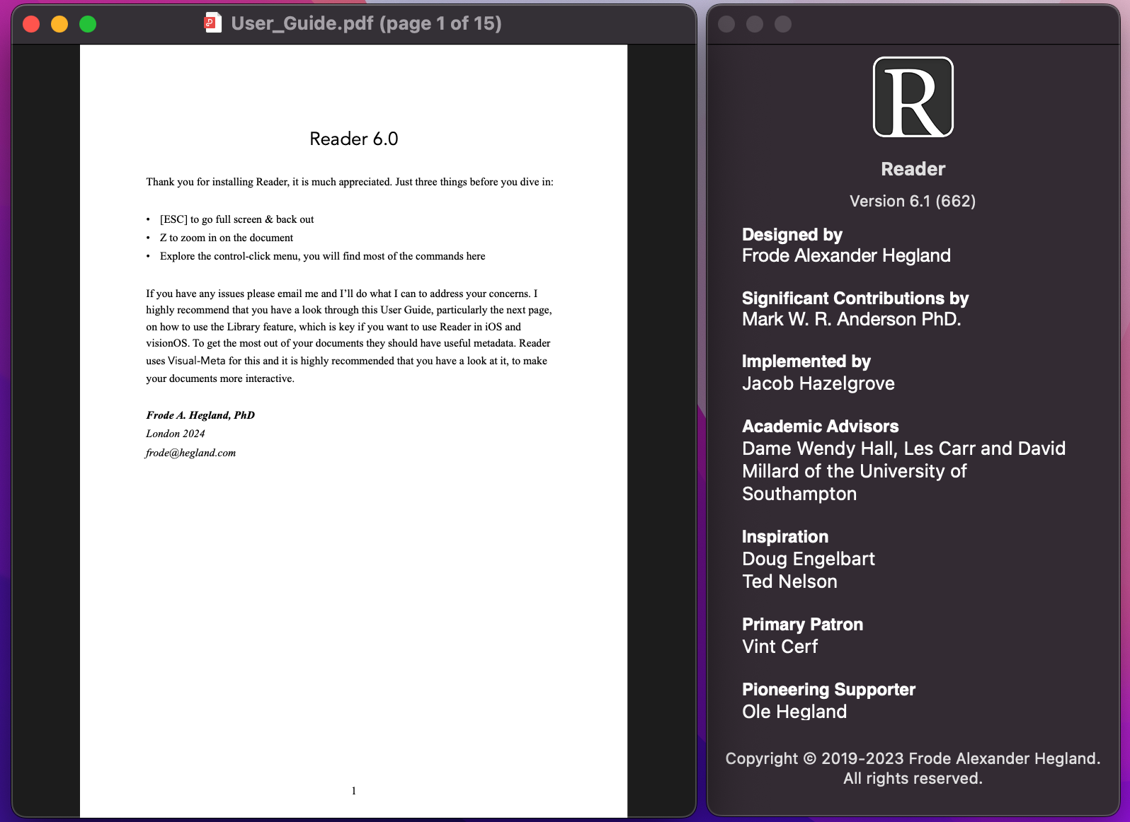 • Reader 将显示任何有效的 PDF 文档,但针对查看附加了 Visual-Meta 的 PDF 文档进行了优化。