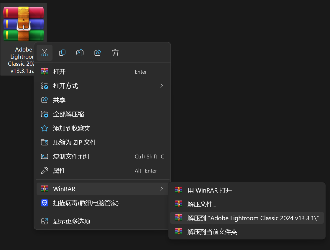 1、右键解压到当前文件夹(如果下载完成,不是压缩图标显示,显示白色或者浏览器图样,说明你电脑没有解压软件,自行安装解压软件)