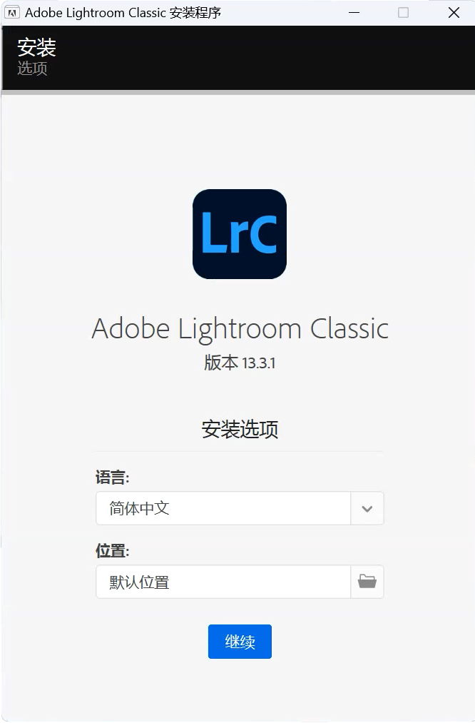 3、自定义安装位置,选择语言,点击继续(如下图)