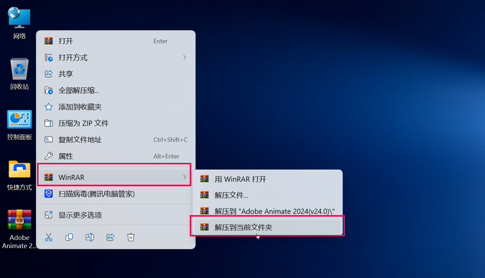 1、右键解压到当前文件夹(如果下载完成,不是压缩图标显示,显示白色或者浏览器图样,说明你电脑没有解压软件,自行安装解压软件)