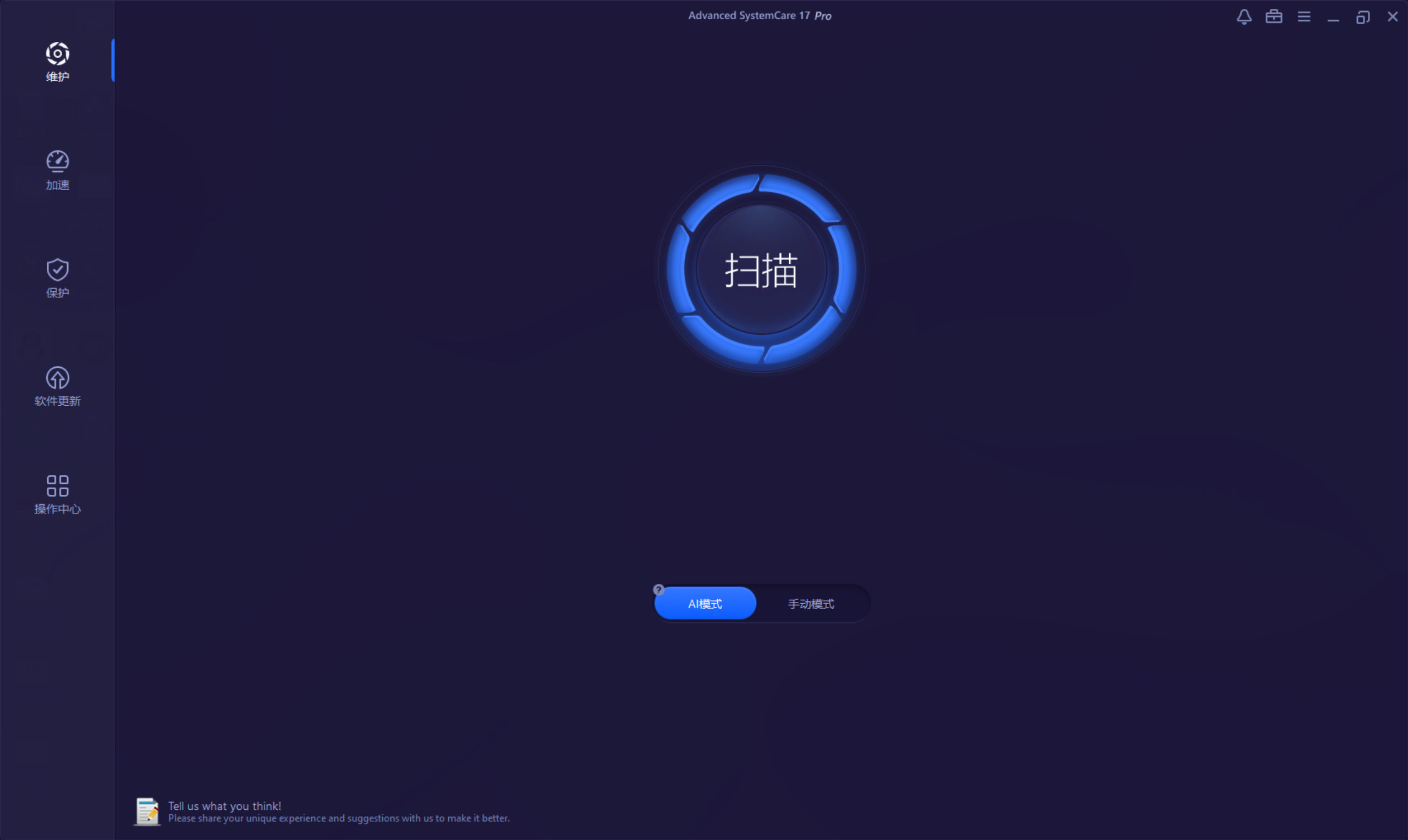 Advanced SystemCare PRO提供始终在线,自动化的一体化PC优化实用程序。它专注于一键式解决方案,以检测,清洁,修复,加速并最终保护PC。 Advanced SystemCare是一款易于使用的PC维护程序,是世界非常好的系统实用程序,可实现卓越的PC健康!凭借新颖的系统技术,Advanced SystemCare使您能够更快地运行计算机。与任何其他系统实用程序相比,确保更稳定,更高效。