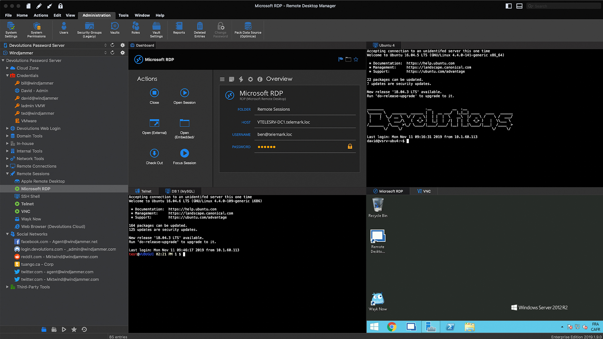 Remote Desktop Manager for Mac将所有远程连接集中在一个平台上,该平台可以在用户之间以及整个团队之间安全地共享。RDM支持数百种集成技术(包括多种协议和VPN),以及内置的企业级密码管理工具,全局和粒度级访问控制以及强大的移动应用程序,以补充Windows和Mac的桌面客户端。