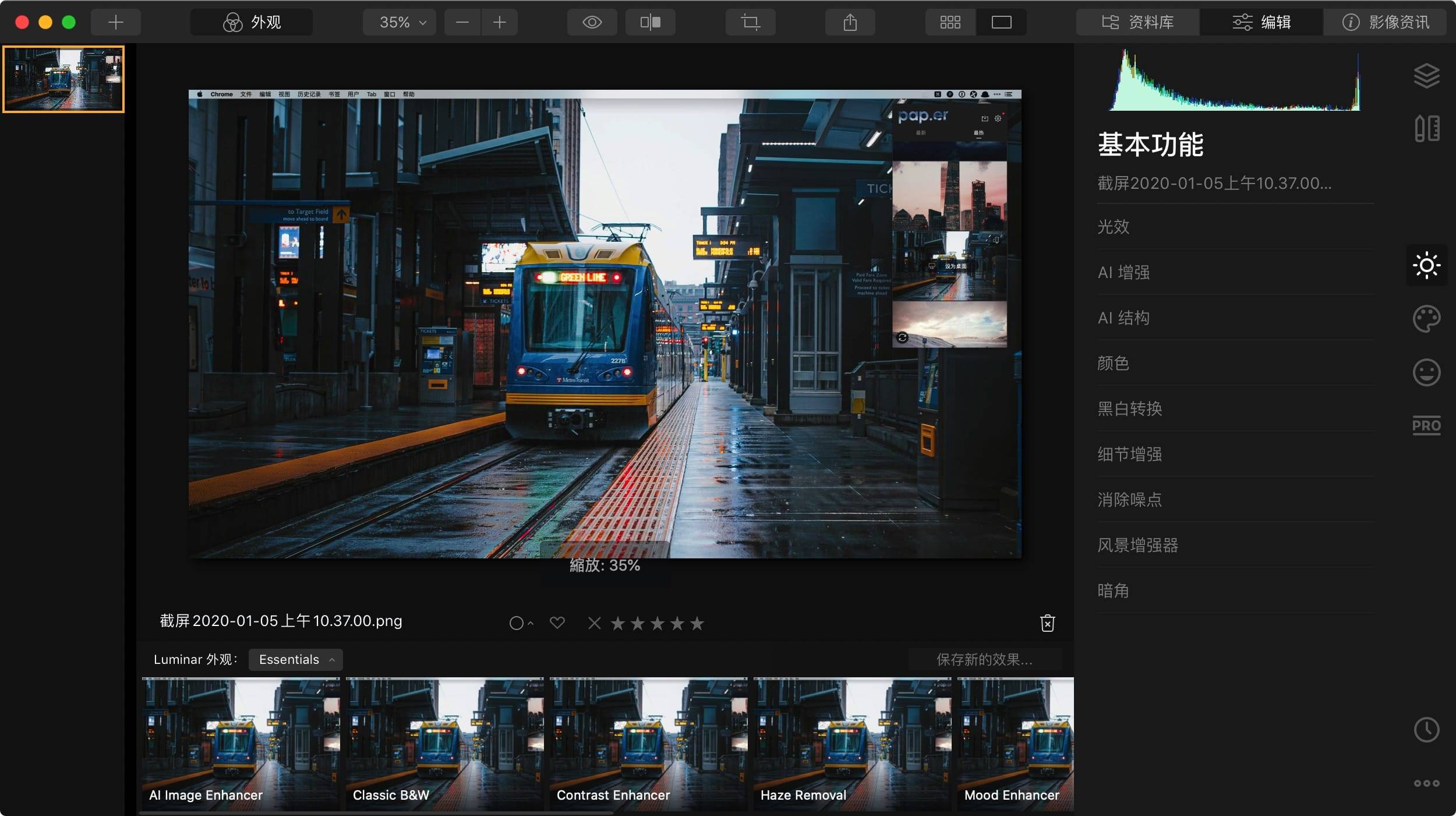 Luminar 4具有优雅的沉浸式UI,可轻松浏览和评级图像。