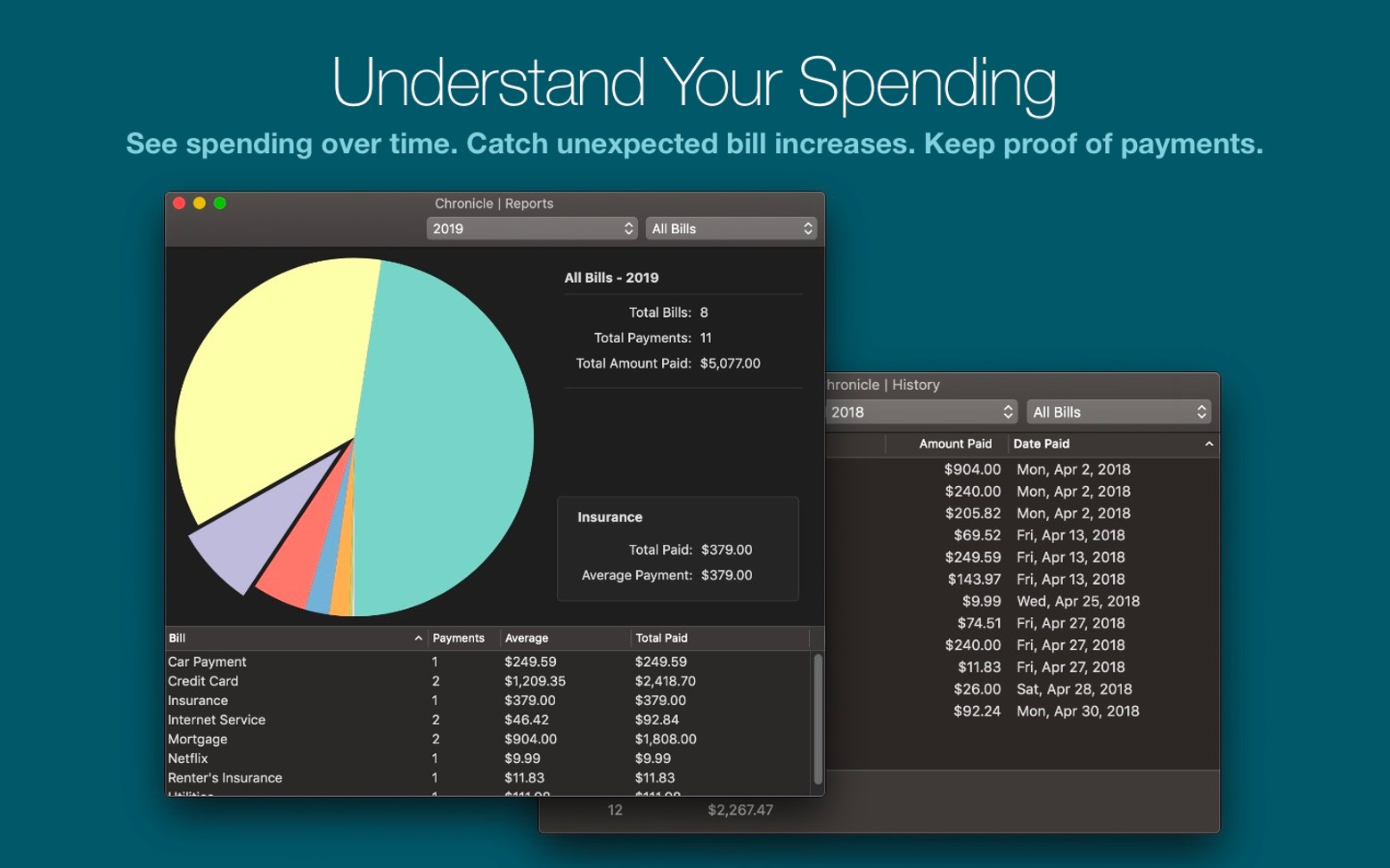 • 永远不会忘记账单——当您的账单到期时,您会收到提醒,提醒可以同步到您的 iPhone 和所有 Mac,即使 Chronicle 没有运行。