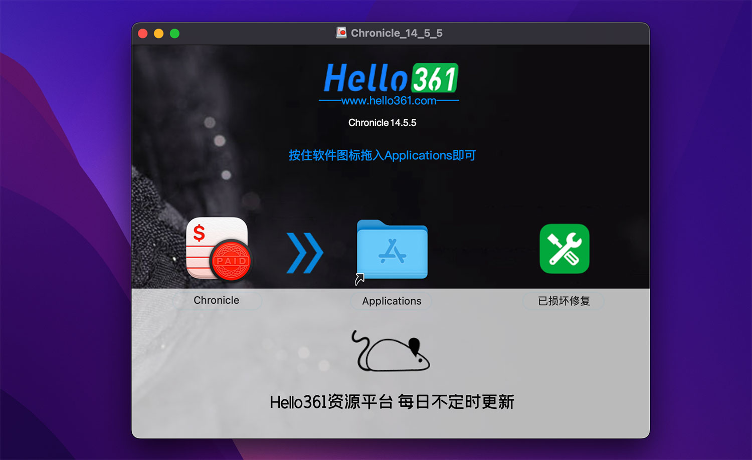 软件安装包下载完成后,拖动左侧的Chronicle Pro到右侧应用程序中即可