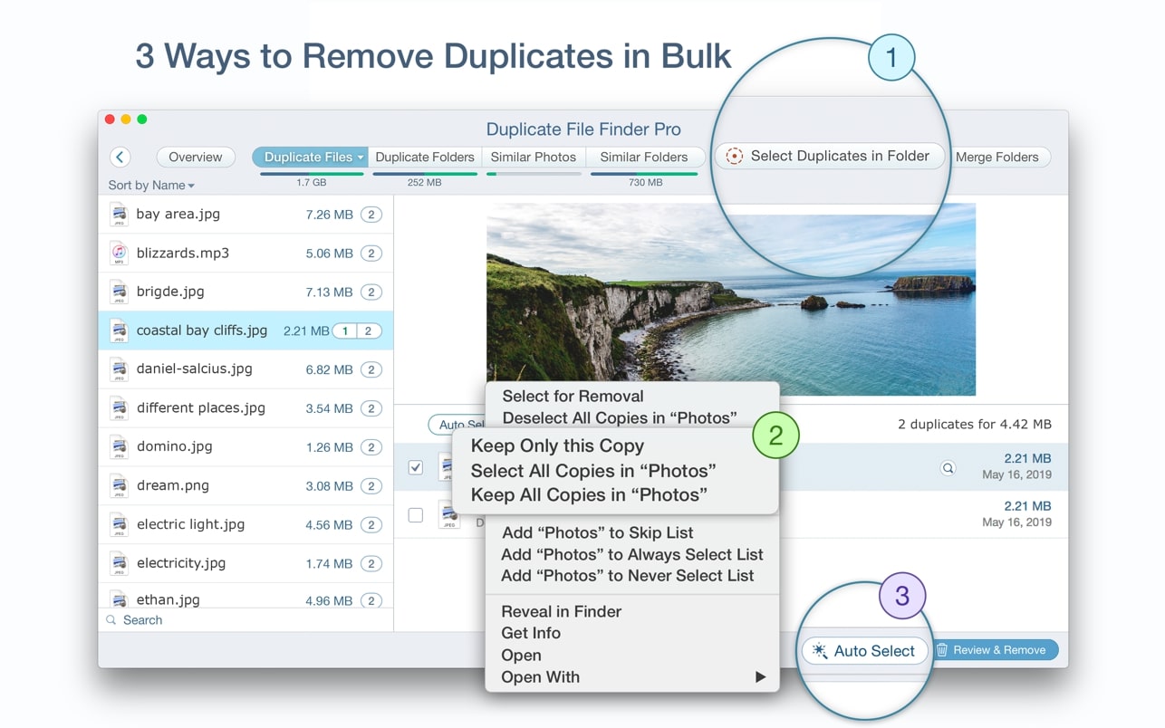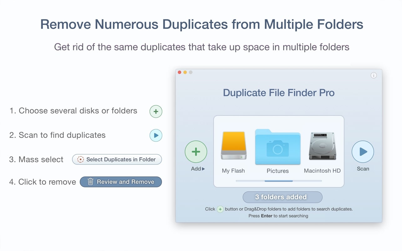 Duplicate File Finder pro for Mac是一款免费实用程序,只需单击 3 次即可在 Mac 上查找重复文件。拖放任意数量的文件夹,然后单击扫描。在一分钟内,该应用程序将按类别提供所有重复文件的报告:图像、视频、音乐、档案、文档和所有其他特定扩展名。很容易看出每个文件占用了多少空间。
