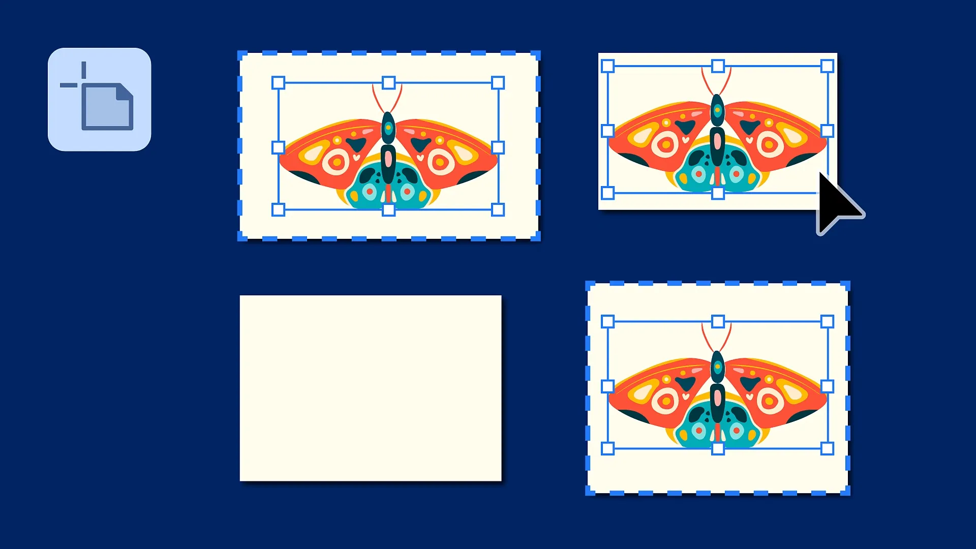 您现在可以使用「贴至上层」、「贴至下层」或「就地贴上」,直接将物件贴至选取的工作区域上。