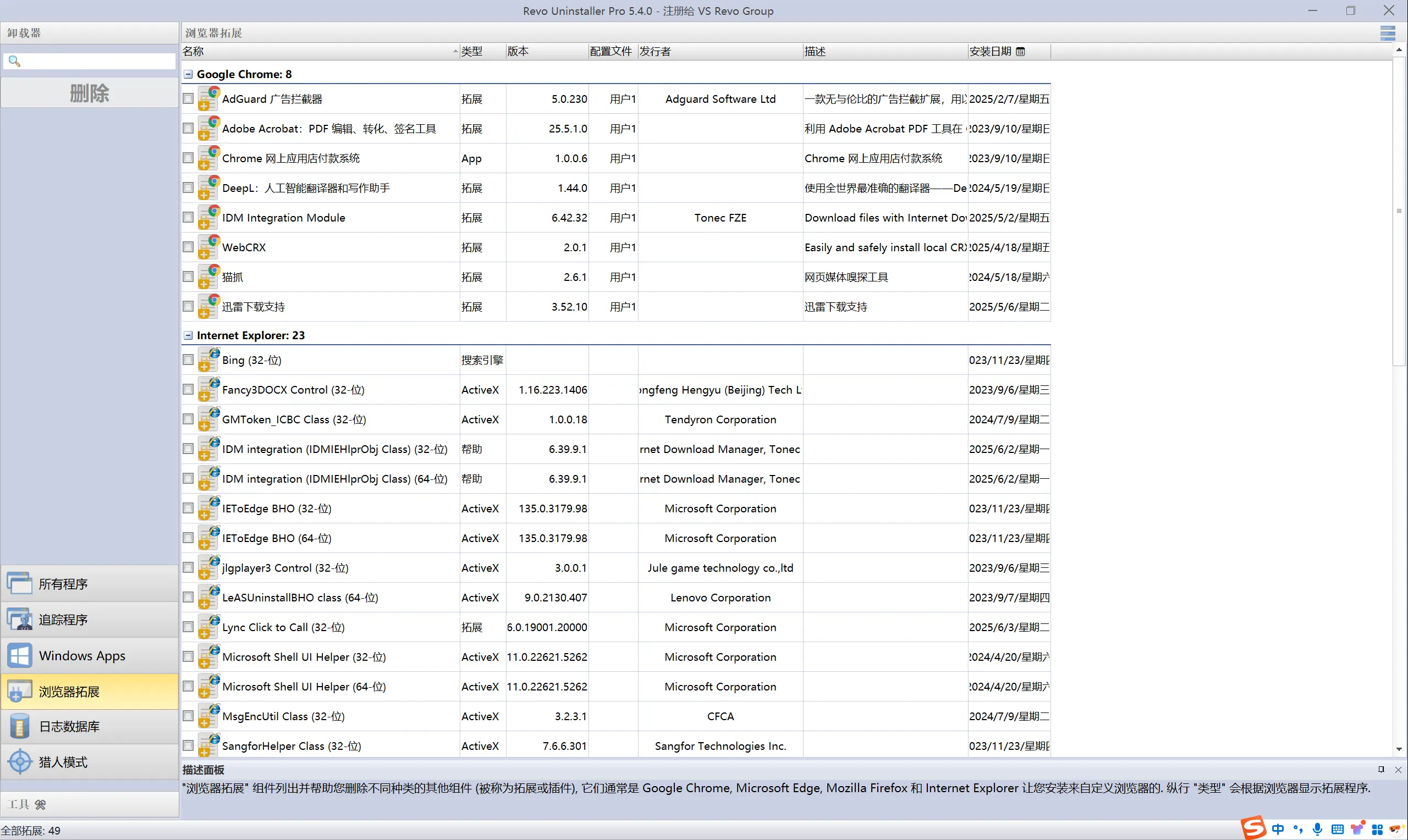 Revo Uninstaller Pro是一款非常好用且强大的顽固软件强制卸载工具,主要为大家提供猎人模式、安装跟踪监视改动、强制卸载扫描分析、启动项管理、使用痕迹清理、垃圾文件清理、浏览器垃圾清理等诸多功能。此款软件使用简单,功能强大,可以帮助大家删除顽固的软件和残留。