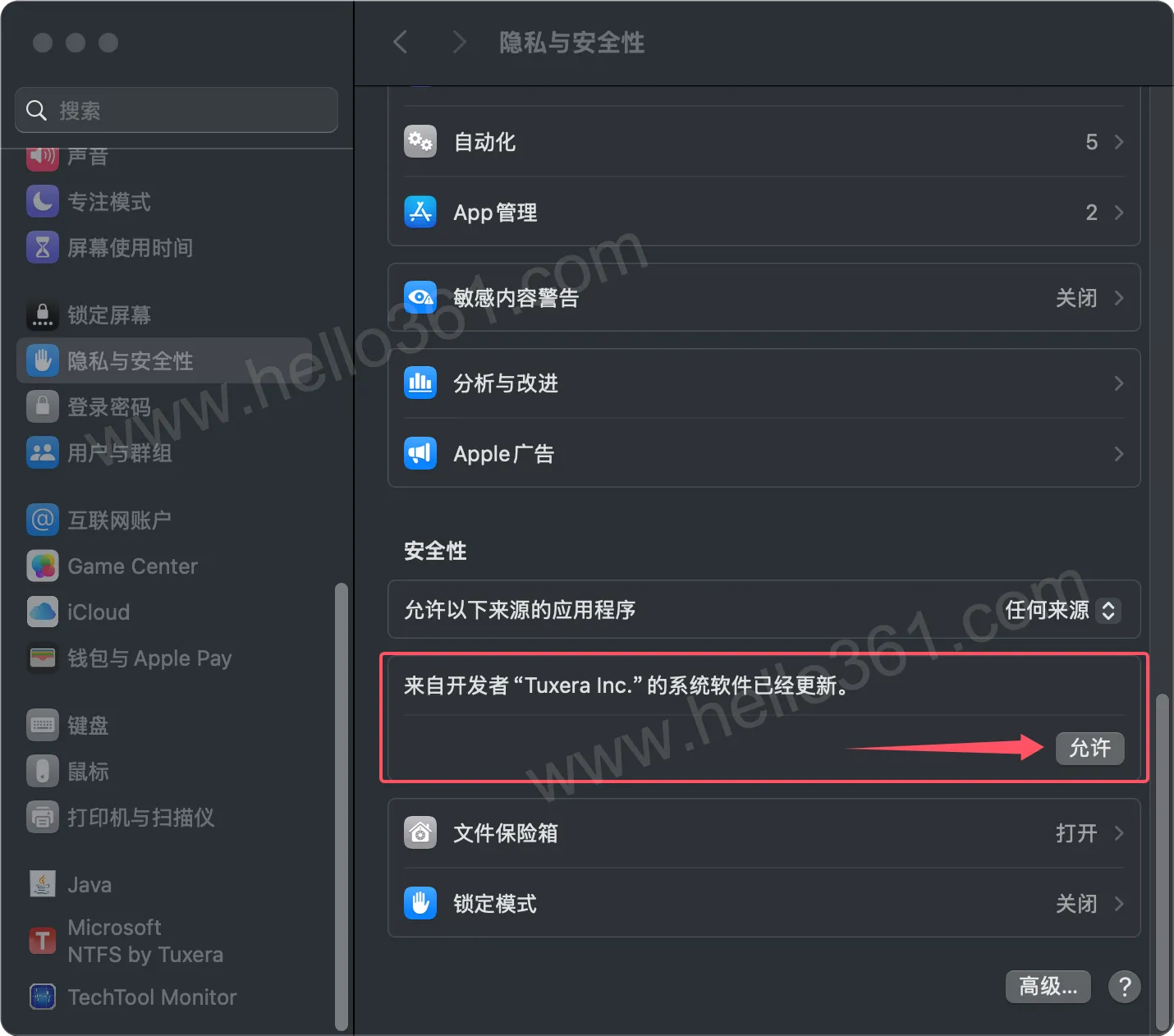 在使用mac电脑时,部分软件或者插件需要开启系统扩展才能正常使用,比如Paragon NTFS,Tuxera NTFS软件等,需要读写NTFS格式等移动硬盘时就需要开启系统扩展。