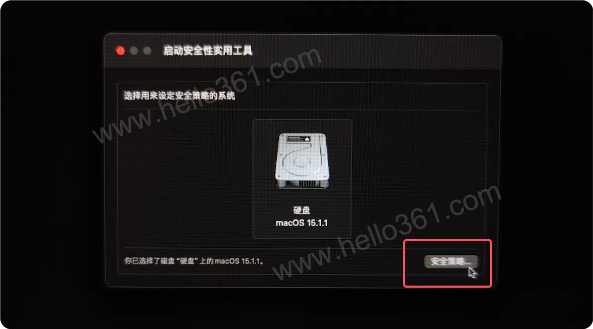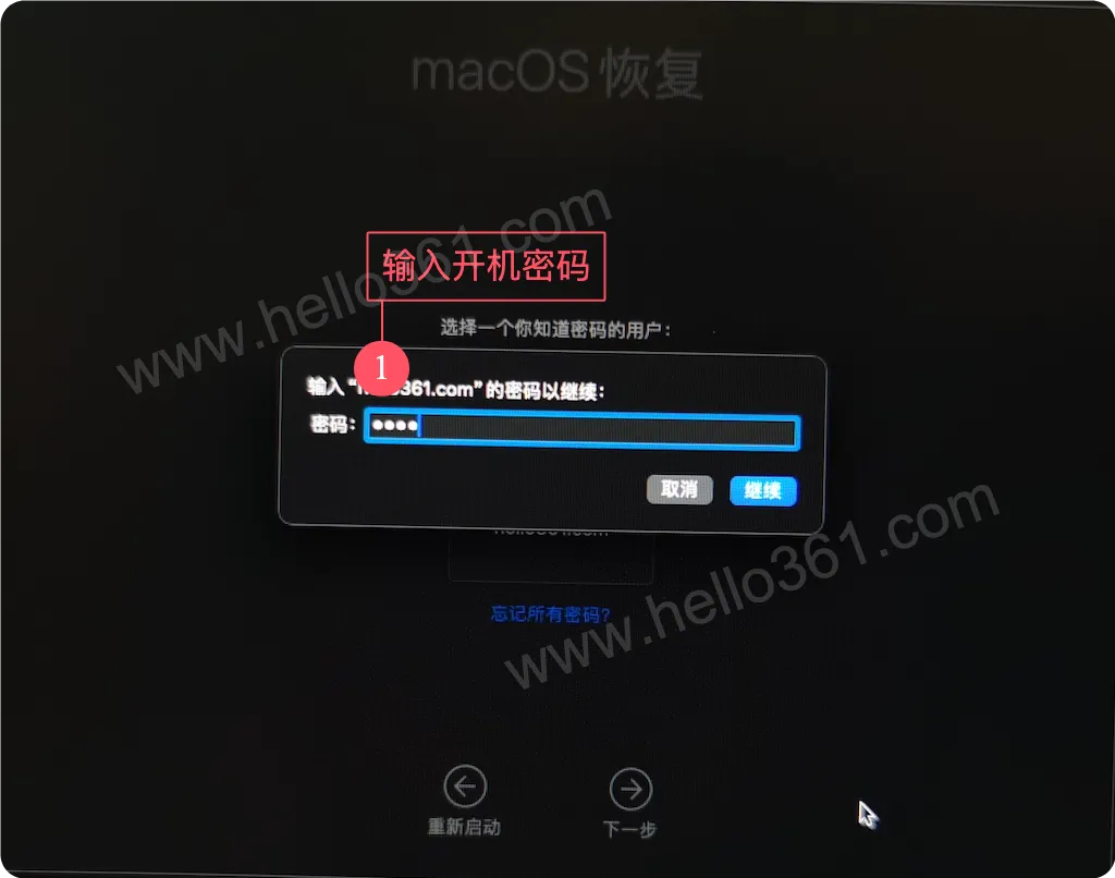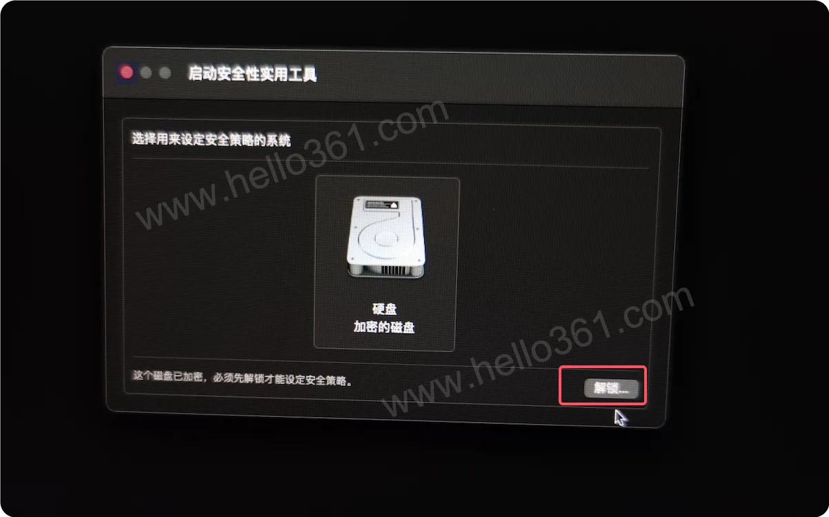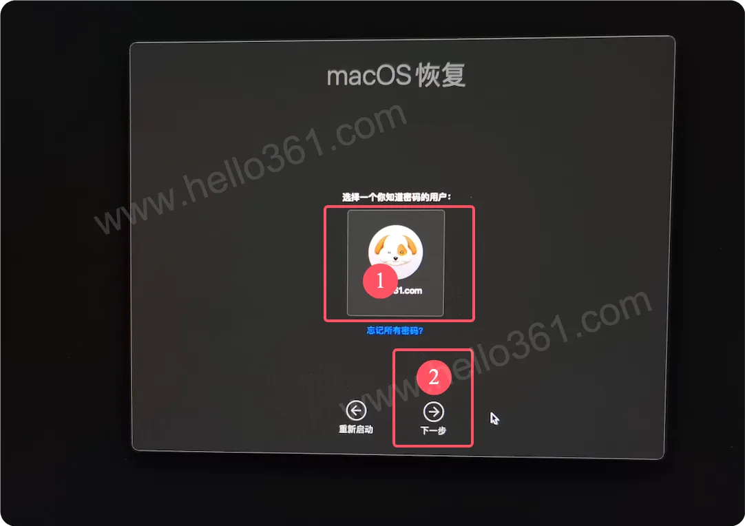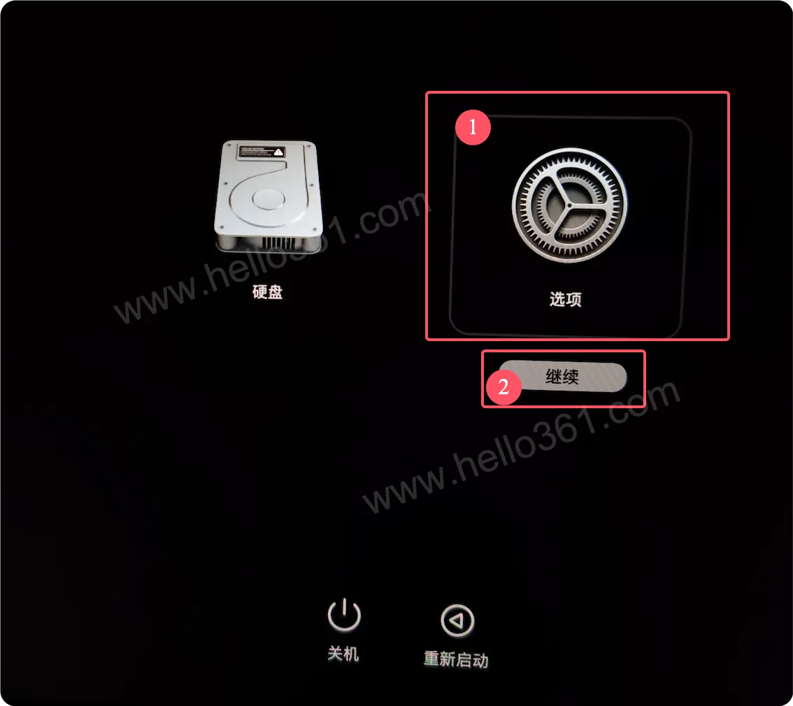2、第二步:按住触控ID或电源按钮,至少10秒以上,直到进入macOS恢复,将出现启动选项窗口: