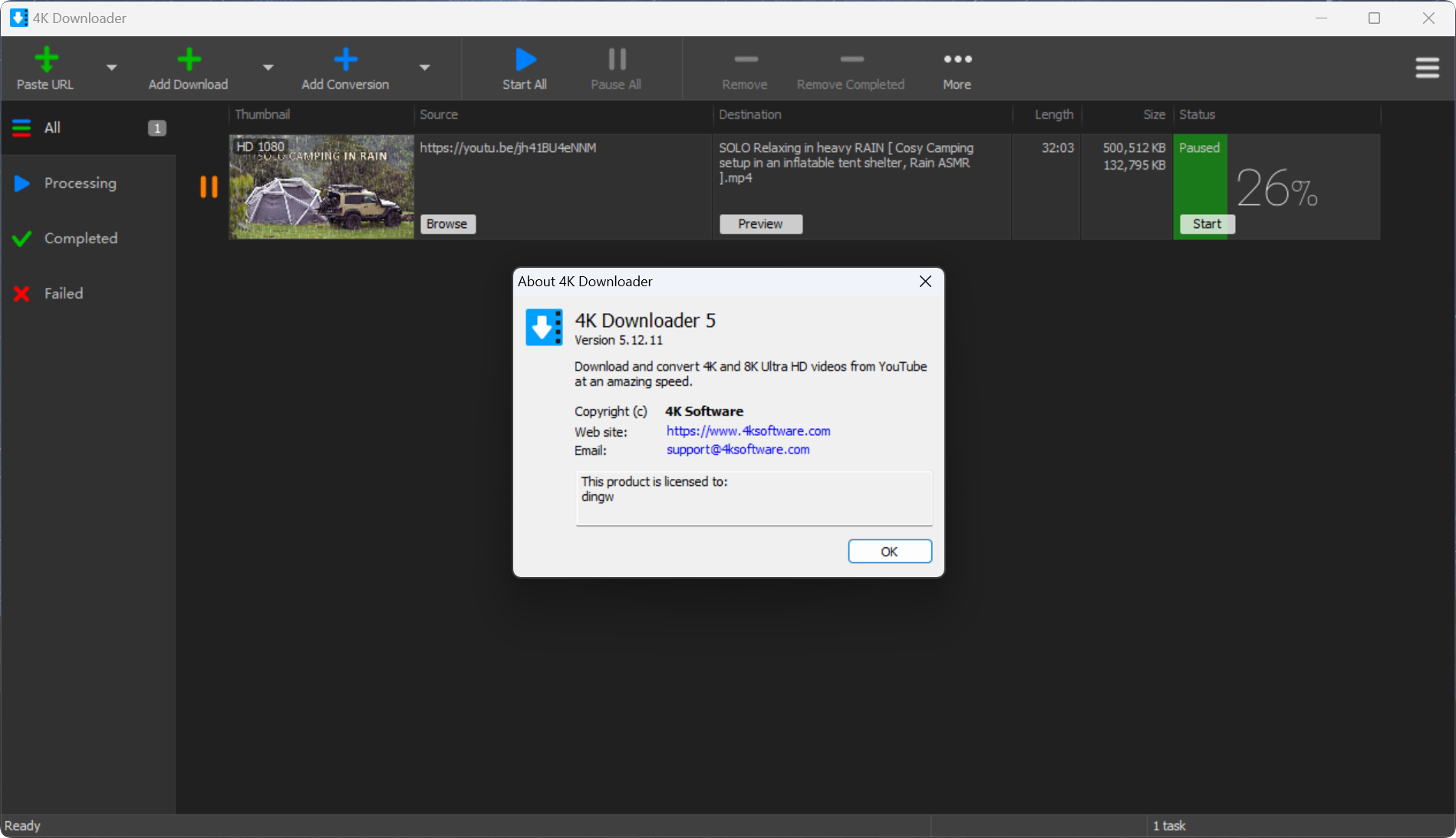 4K Downloader专业版是一款功能强大的4K和8K YouTube视频下载器!使用可轻松的下载4K和8K,60FPS,360°VR YouTube视频!下载YouTube视频离线观看,更流畅更舒适,集成了下载,转换,合并,编辑和订阅的功能,可以快速从YouTube,Facebook,Twitter,Instagram,Vimeo,Dailymotion和其他站点下载视频,将YouTube视频转换为MP3,合并视频和字幕,剪切和裁剪。视频等。界面友好简单,下载完成后视频质量非常的好,支持4K甚至是8K的分辨率,支持批量操作,使用也很简单,只需要复制粘贴网址,然后设置视频质量就能够开始下载啦,欢迎需要此款工具的朋友前来下载使用。