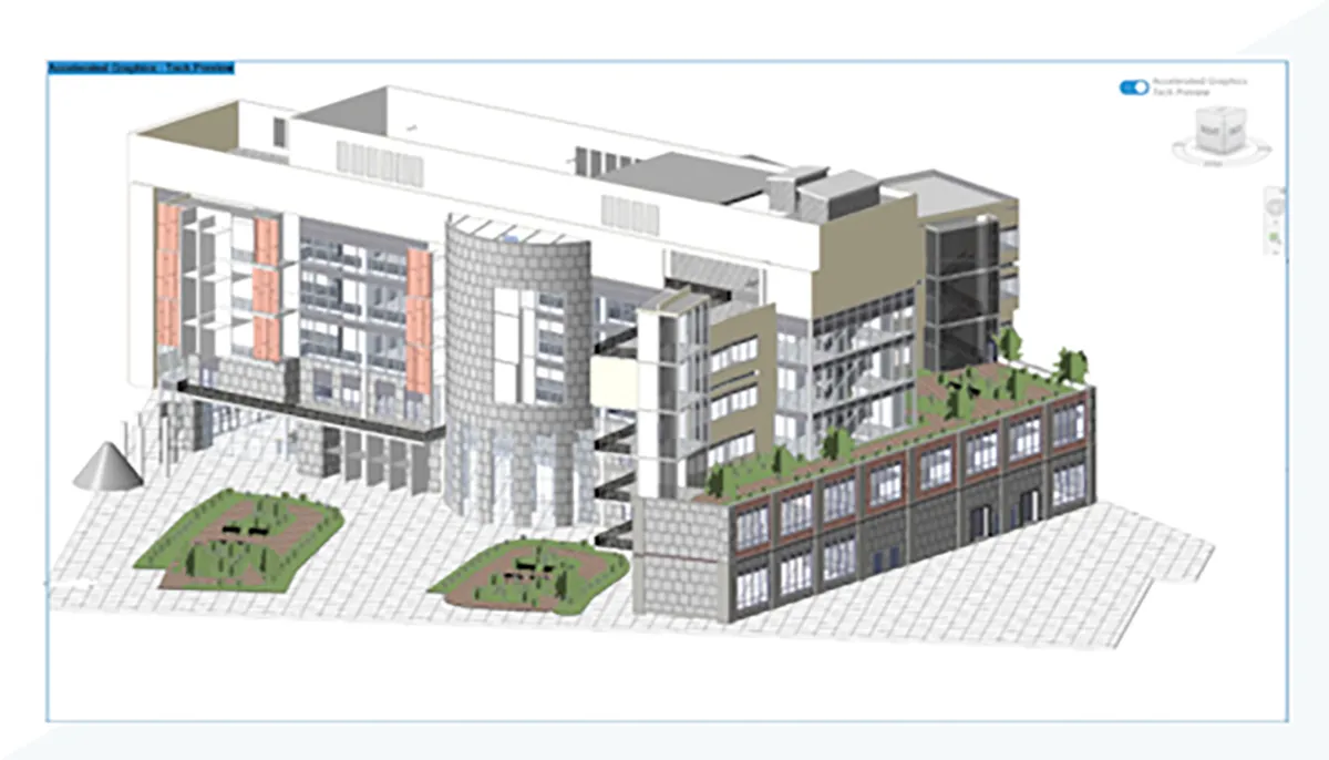 使用此技术预览可提前获取 Revit 的新图形平台,从而提供更快的导航和优化的硬件利用率,当前重点在于显卡。“加速图形”基于每个视图启用,不会对模型或视图创建任何更改。当视图或模型关闭时,该视图的加速图形模式将被禁用。