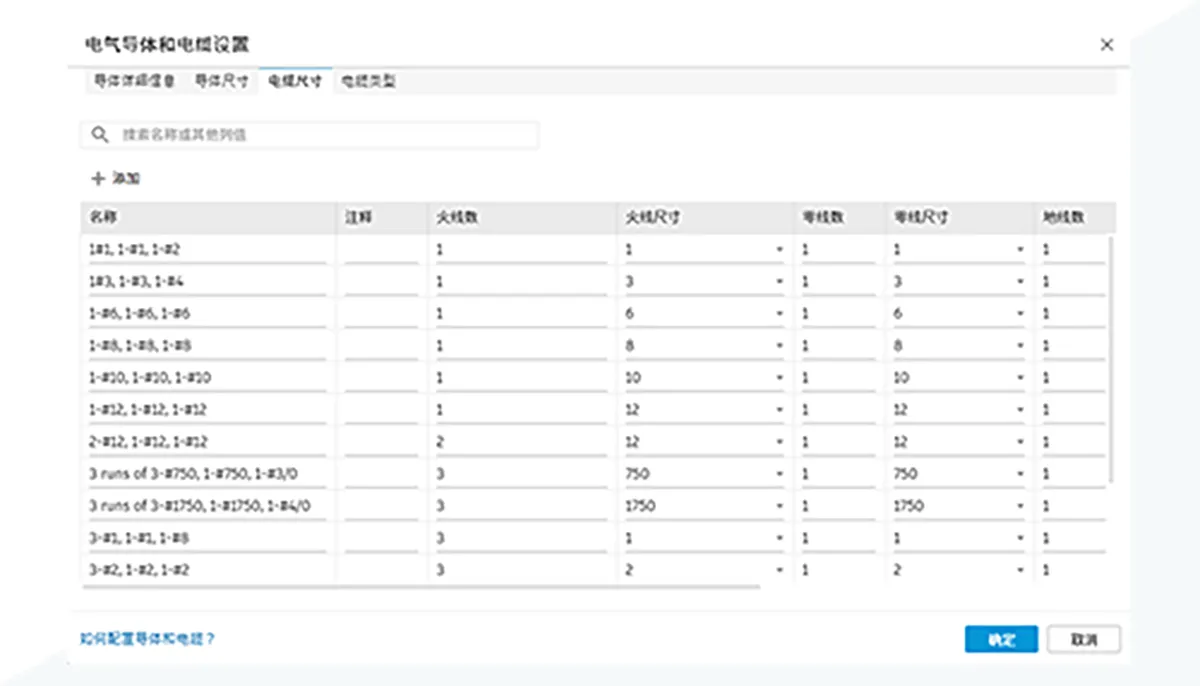 电导体和电缆是可定制的。新的“电导体”和“电缆”设置允许您定义导体,然后在电缆尺寸和电缆类型中使用这些导体定义。然后,这些电缆类型将指定给模型中的线路。