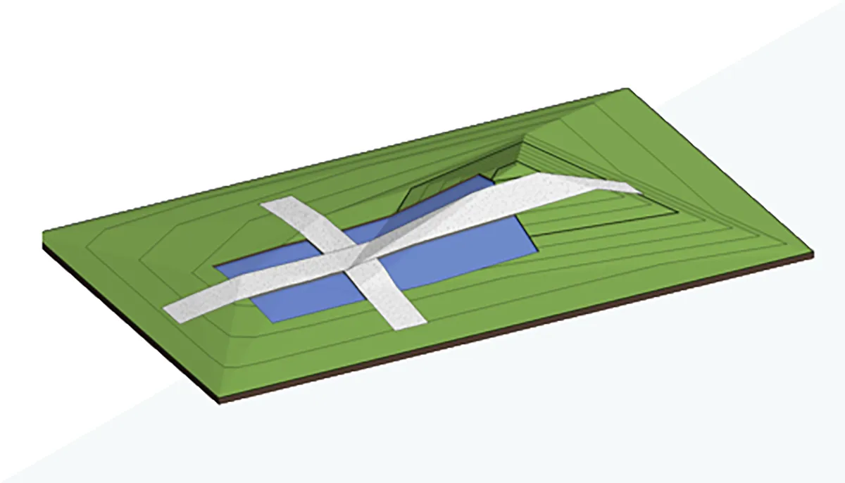 在地形实体上创建细分时,将生成遵循主体地形实体几何图形的新地形实体。您可以为细分提供偏移量。正偏移将细分放置在主体上方,而负偏移将其放置在主体下方。负偏移开挖主体,挖掘量在细分的属性中报告。若要创建使用与主体地形实体不同的材质的细分,请更改地形实体类型。