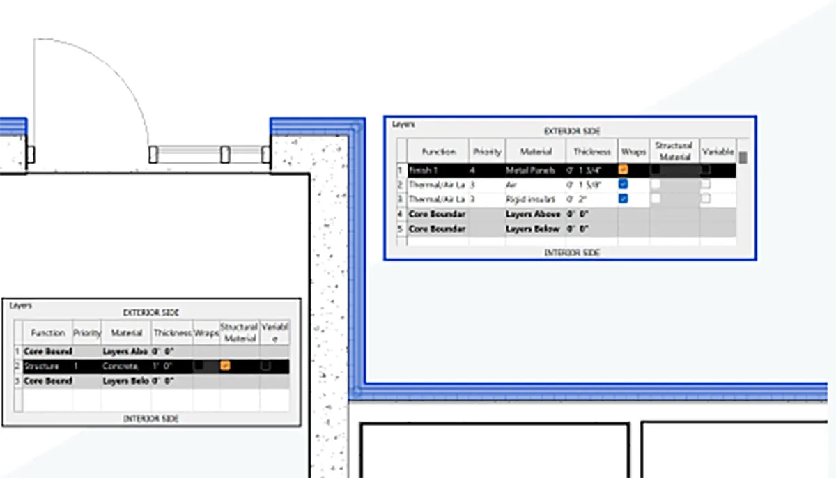 可以删除核心层或将层移动到核心层之外以改进默认连接,并支持面墙和楼板的可见性控制。
