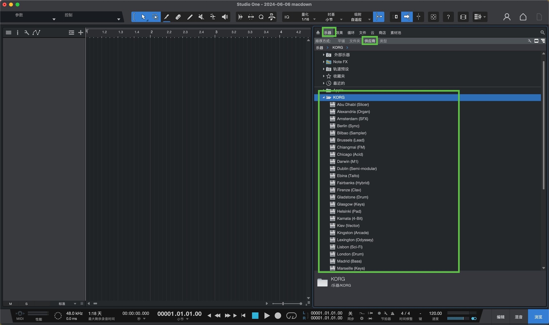 打开Studio One在乐器–供应商下即可找到插件,拖动到左侧即可
