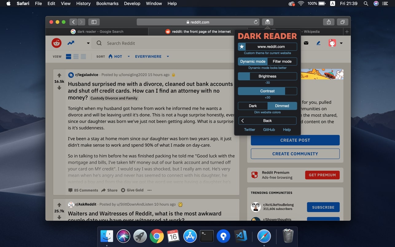 Dark Reader for Safari Mac这个眼部护理扩展允许您在夜间模式下为网站创建深色主题。Dark Reader 会反转明亮的颜色,使它们具有高对比度并且在夜间易于阅读。这非常适合系统暗模式。