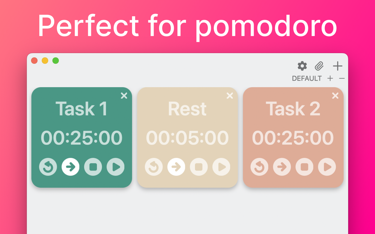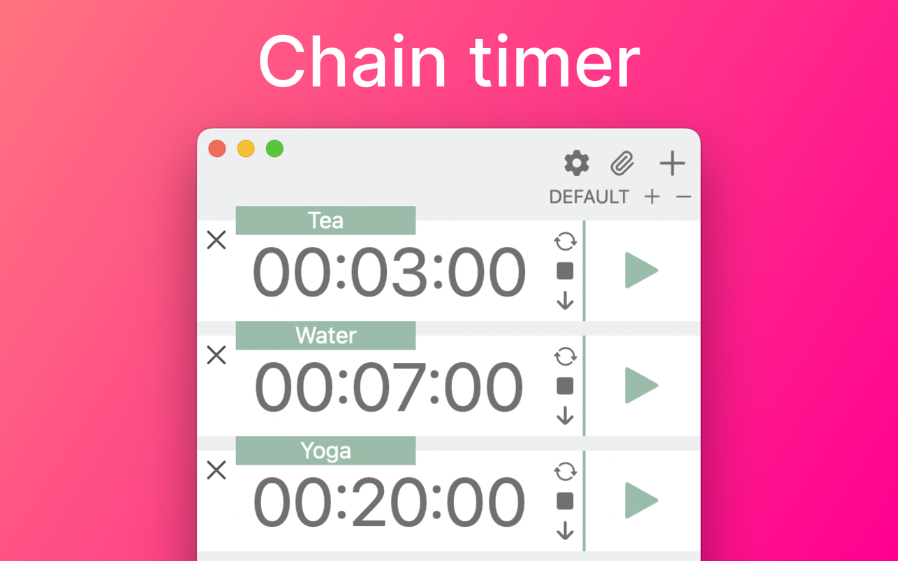 Chain Timer for mac方便的多功能计时器,适合每天使用。添加了在应用程序设置中保持在其他窗口顶部的功能。