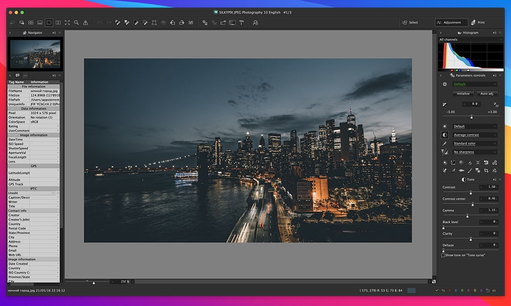 SILKYPIX 为查看或打印提供色彩管理,包括一个“打印机”系统,允许您从 ICC 配置文件模拟打印结果。这些功能支持从精细编辑到打印的过程。