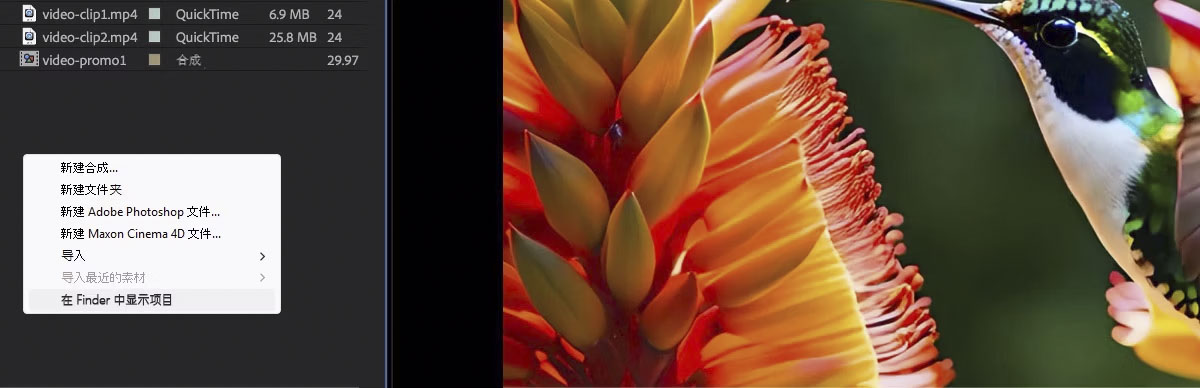 After Effects 提供一个方便的功能,可让您立即直接从应用程序中找到项目文件。 只需单击即可打开计算机的文件资源管理器,并突出显示当前打开的项目文件的准确位置。 这将简化文件管理,减少通过文件夹进行搜索所花费的时间,并可帮助您保持井井有条,尤其是在处理多个复杂项目时。