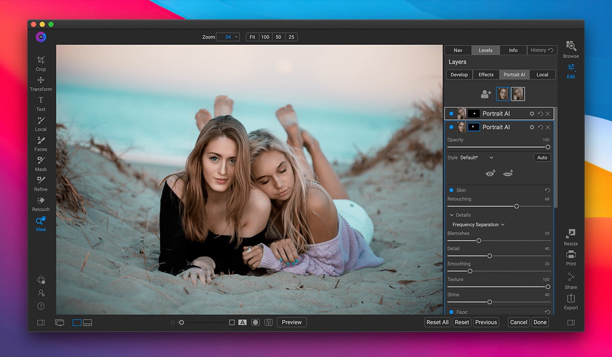 ON1 Portrait AI 几乎适用于任何工作流程。使用 ON1 Portrait AI 作为插件在几秒钟内获得惊人的修饰效果: