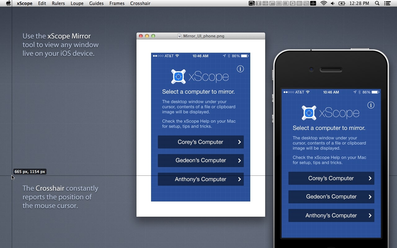 – 下载适用于 iOS 的 xScope Mirror 应用程序:http://xscopeapp.com/ios