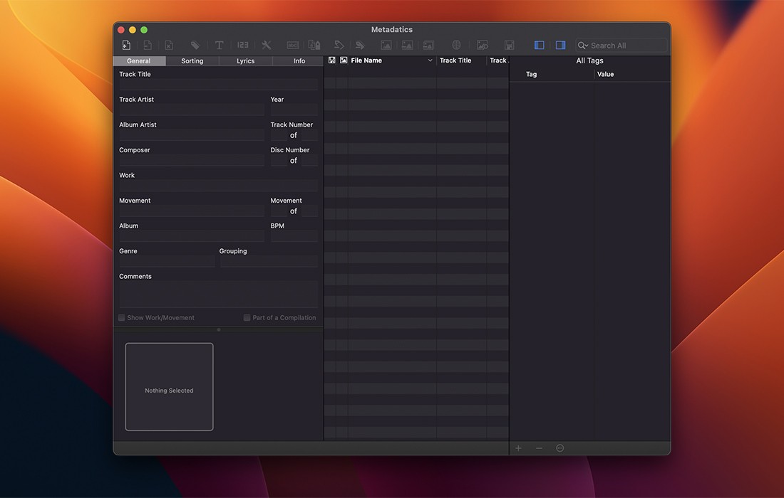 Metadatas 是一款功能强大且先进的音频元数据编辑器。支持批量编辑最常见的音频文件类型,包括 MP3、M4A、AIFF、WAV、FLAC、APE、OGG、WMA 等等。
