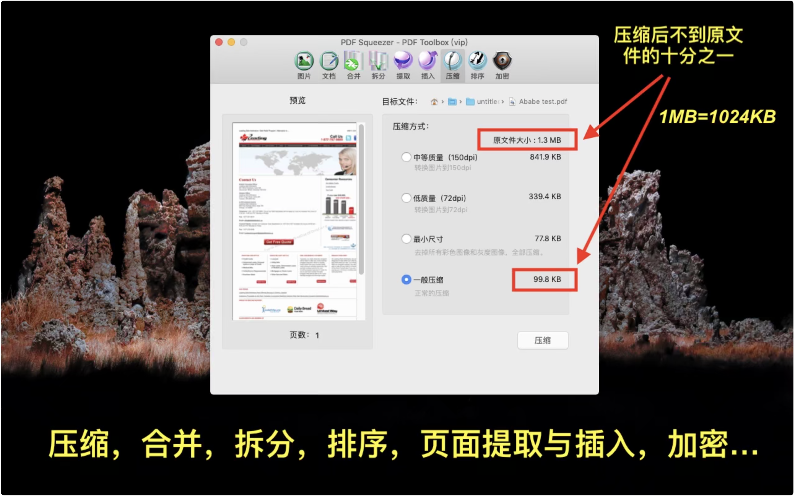您可以压缩 PDF 文件,使文件更小以节省宝贵的磁盘空间, 有些PDF经压缩后不到原文件的十分之一;